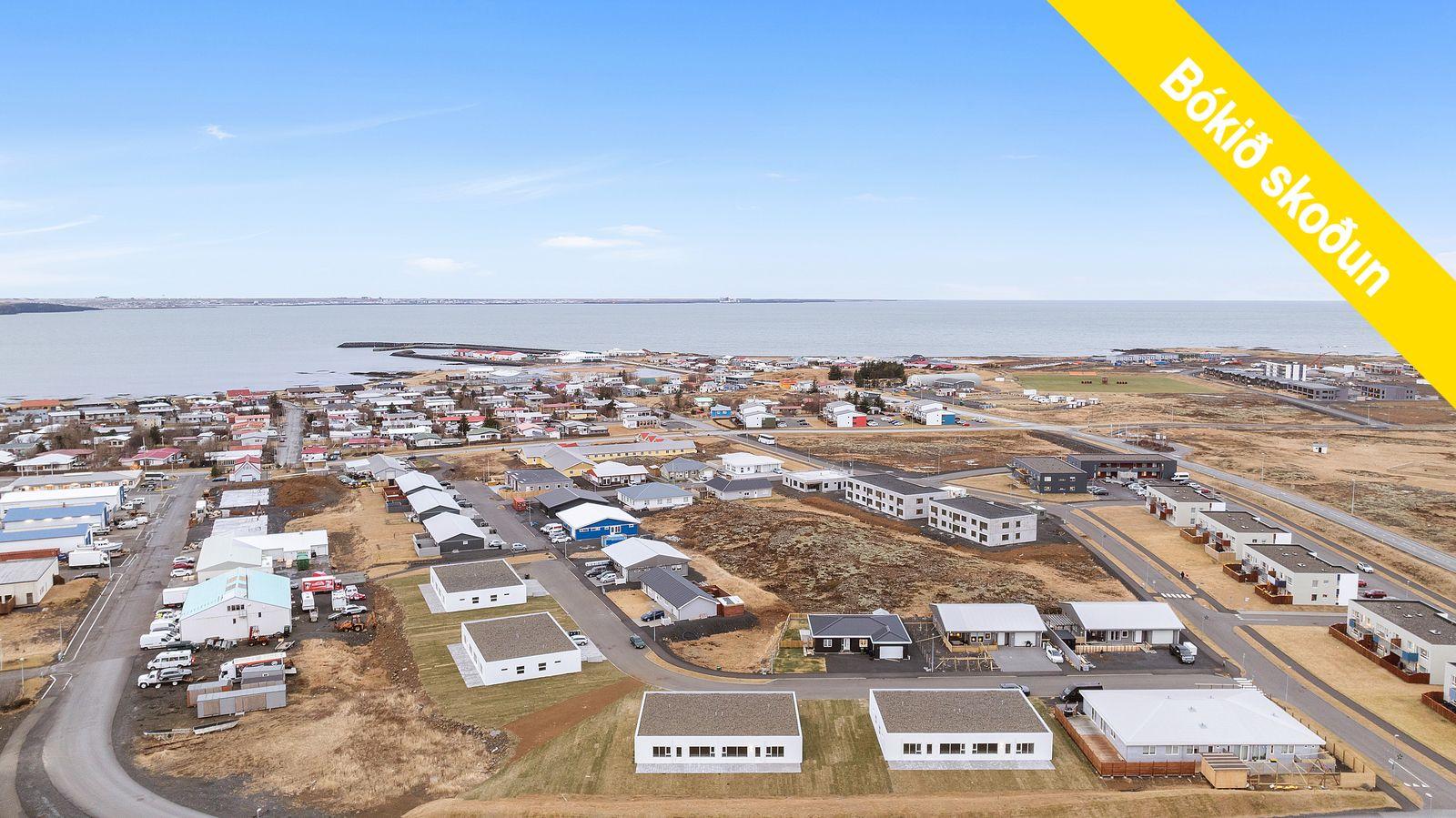 Lóð: hellulagt bílastæði fyrir framan hús með hitalögn. Fyrir aftan hús er hellulögð verönd. Að öðru leyti er lóðin tyrfð.