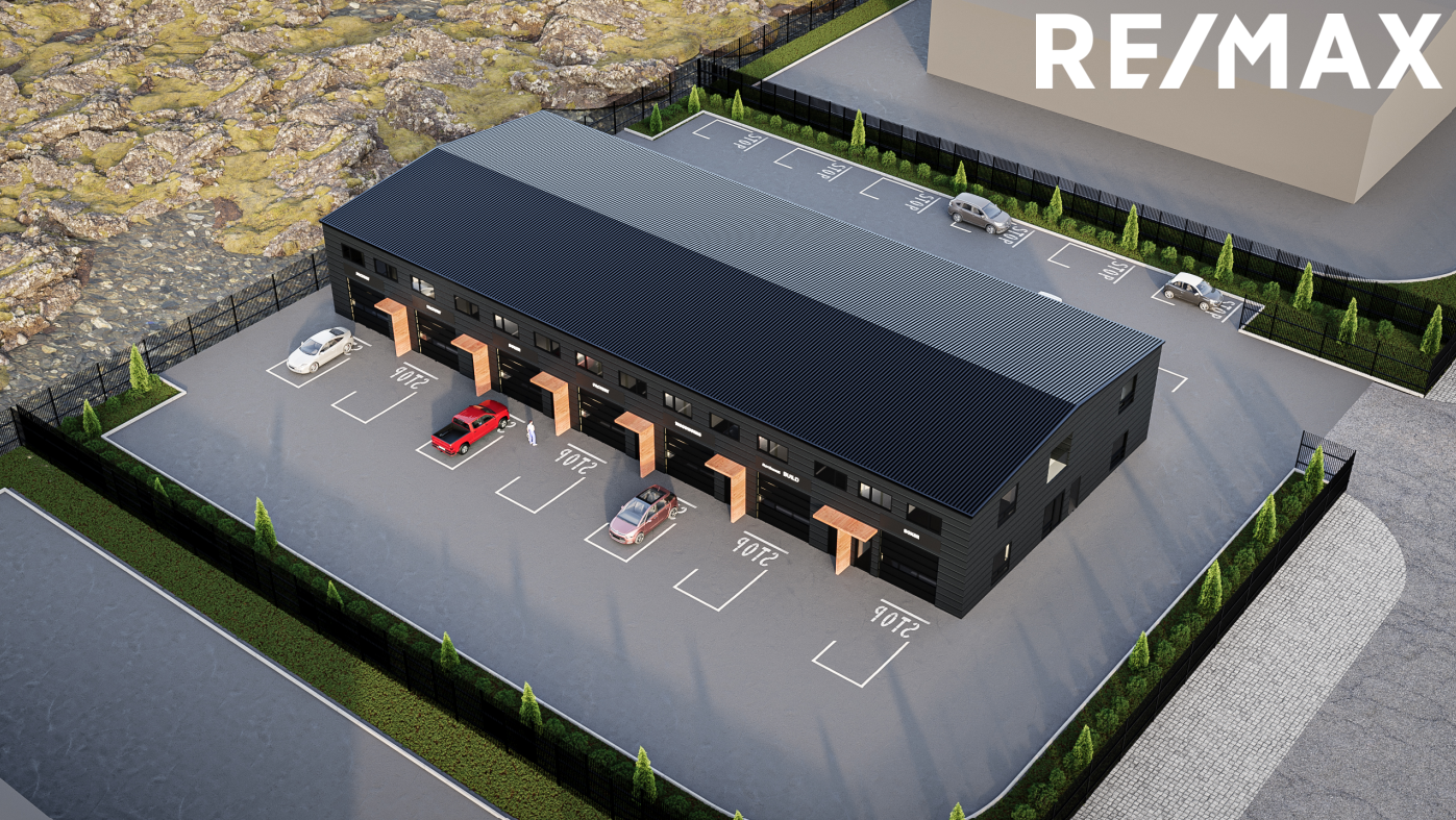 - Rafmagn (utanáliggjandi) fullfrágengið skv. teikningum og skilast með góðum iðnaðarlömpum í lofti og útikastara fyrir ofan iðnaðarhurð.