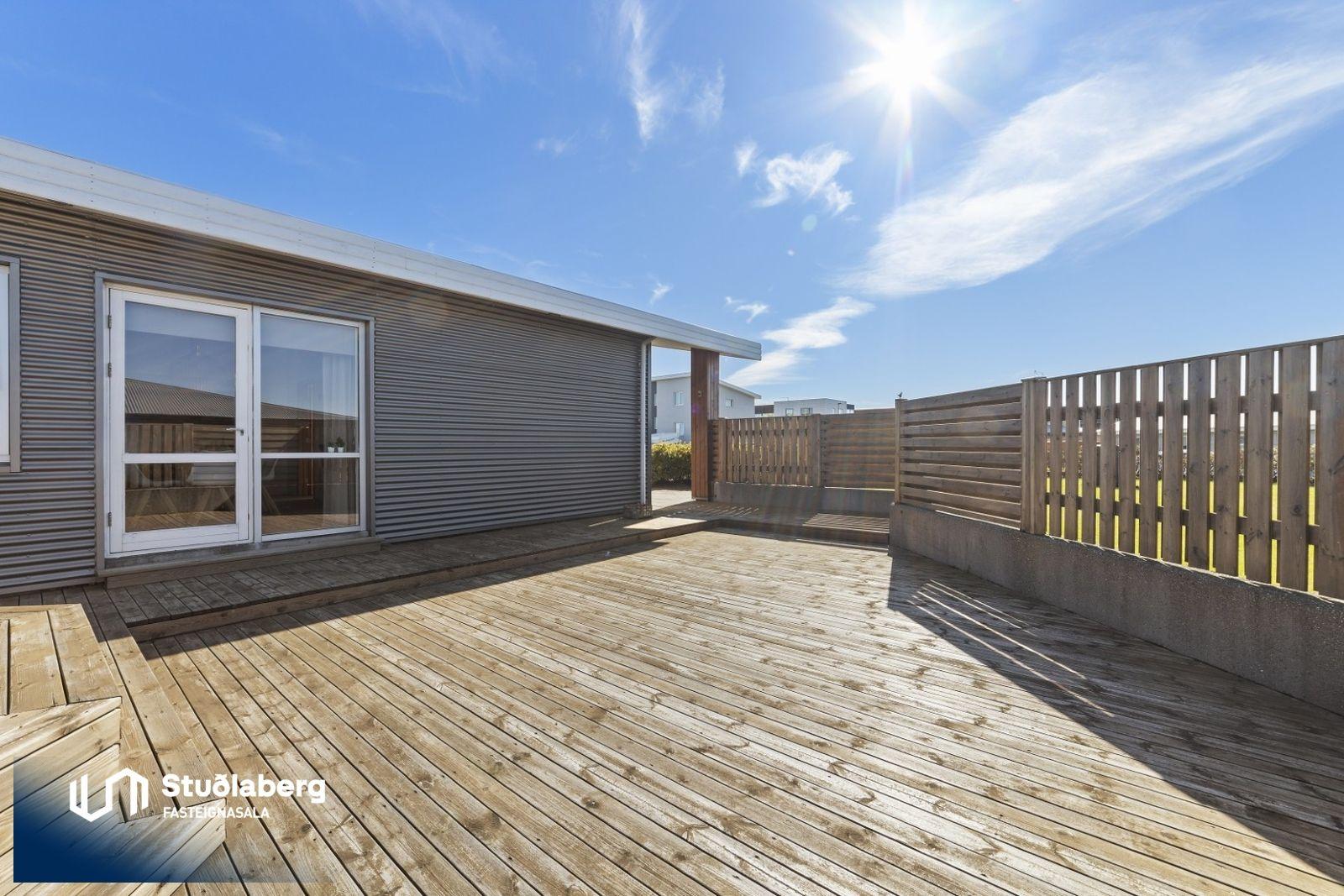 *Hiti er í öllum gólfum hússins. *Fullbúið baðherbergi er inn af hjónaherbergi með innréttingu og sturtuaðstöðu. *Bílskúr er flísalagður og innangengt er í hann í gegnum þvottahús. Háaloft er yfir hluta bílskúrs. *Húsið er klætt að utan með gráu báruáli en við anddyri er búið að klæða veggi með Lerkivið. *Innkeyrsla er hellulögð og með hitalögn og lóðin er grasilögð. *Verönd er afgirt og þar er heitur pottur.