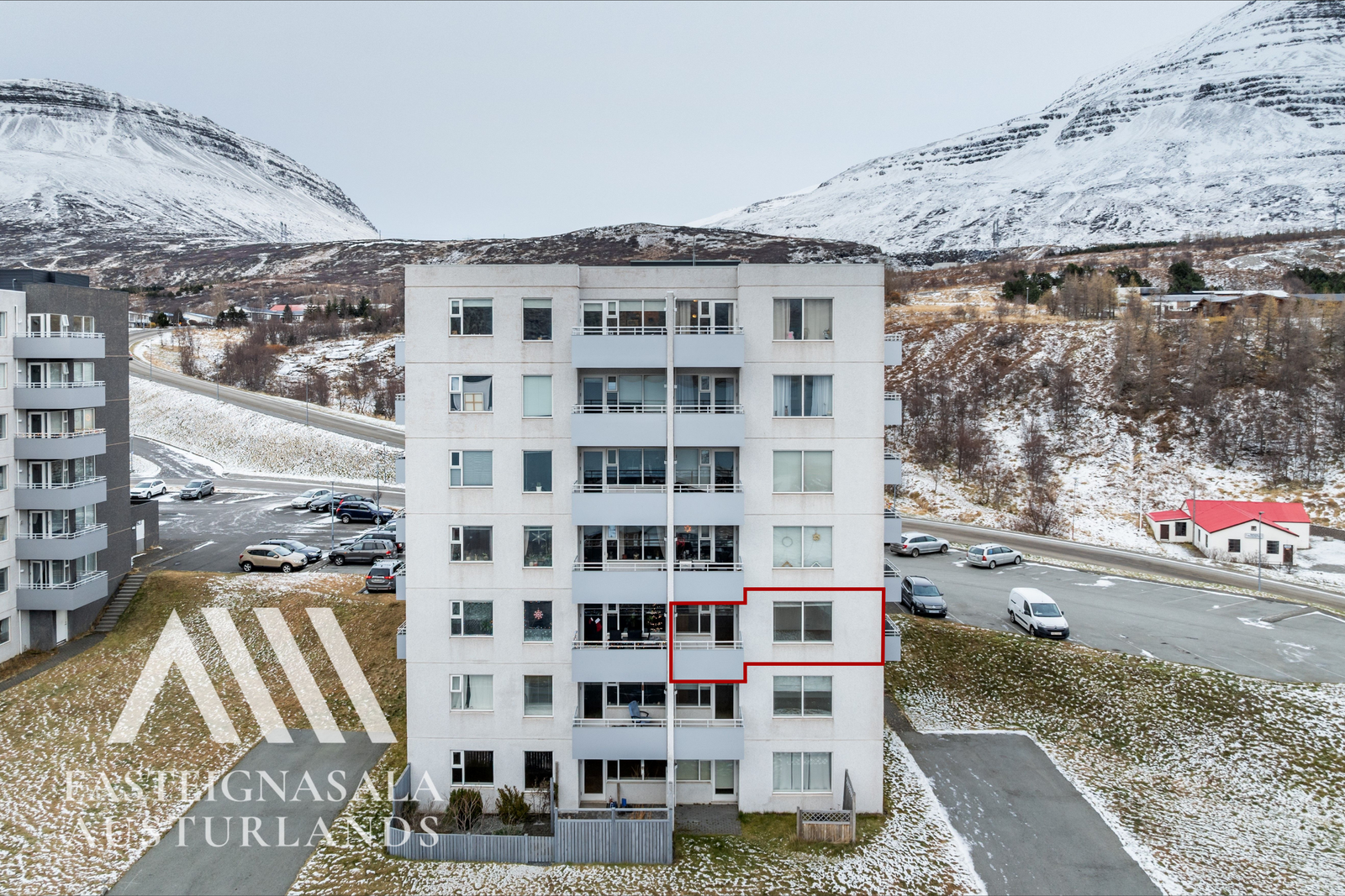 Allar nánari upplýsingar veitir Heimir Arnfinnsson lfs. // 583-2500 // heimir@fastaust.isAlrými: Anddyri, eldhús og stofa eru öll í sama rými með plastparketi og töföldum fataskáp, úr stofu er útgengt á svalir með útsýni til austurs og suður yfir fjörðinn.