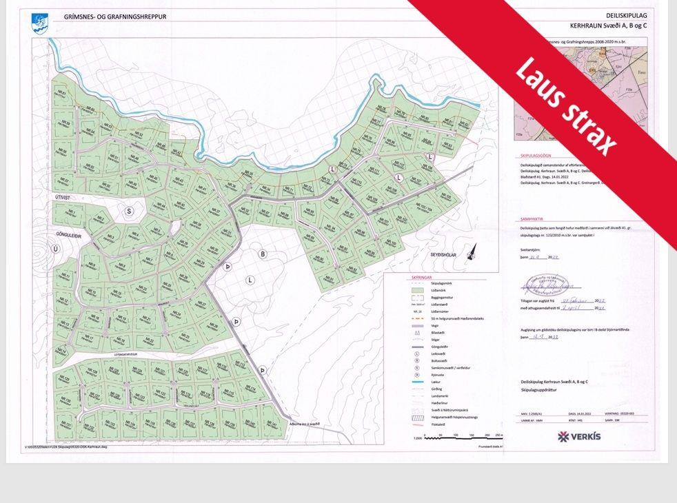 RE/MAX og Sigrún Matthea kynna: Vel staðsett eignarlóð í sumarhúsahverfinu Kerhraun sem er norðan við Kerið í Grímsnesi. Kerhraun er á svæði sem tilheyrir Grímsneshrauni innan svæðisins er hluti af Kálfshólum sem tilheyrir gígaröðinni sem einkennir landslagið í Grímsnesinu. Svæðið er á náttúruminjaskrá og þar með hluti af Kerhrauninu. Hér færðu sent söluyfirlit Lóðin er eignarlóð og skráð 6610 m2 að stærð rafmagn, heitt og kalt vatn er við lóðamörk. Á lóðinn má reisa innan byggingareits, eitt hús allt að stærð 190m2 ásamt gestahúsi allt að stærð 40m2, einnig er heimilt að reisa smáhýsi allt að stærð 15m2. Svæðið er skipulagt sumarhúsahverfi þaðan er stutt að sækja ýmsa þjónustu ma. á Borg í Grímsnesi og á Selfoss, fjöldi golfvalla er í næsta nágrenni við Kerhraun. Akstur frá Reykjavík ca 50 mínútur. Upplýsingar um eignina veitir Sigrún Matthea lgf. í síma 695-3502, sms@remax.is Viltu nánari upplýsingar um sumarhúsafélagið þá opna hér Sumarhúsafélagið Viltu skoða deiliskipulagið opna hér Deiliskipulag