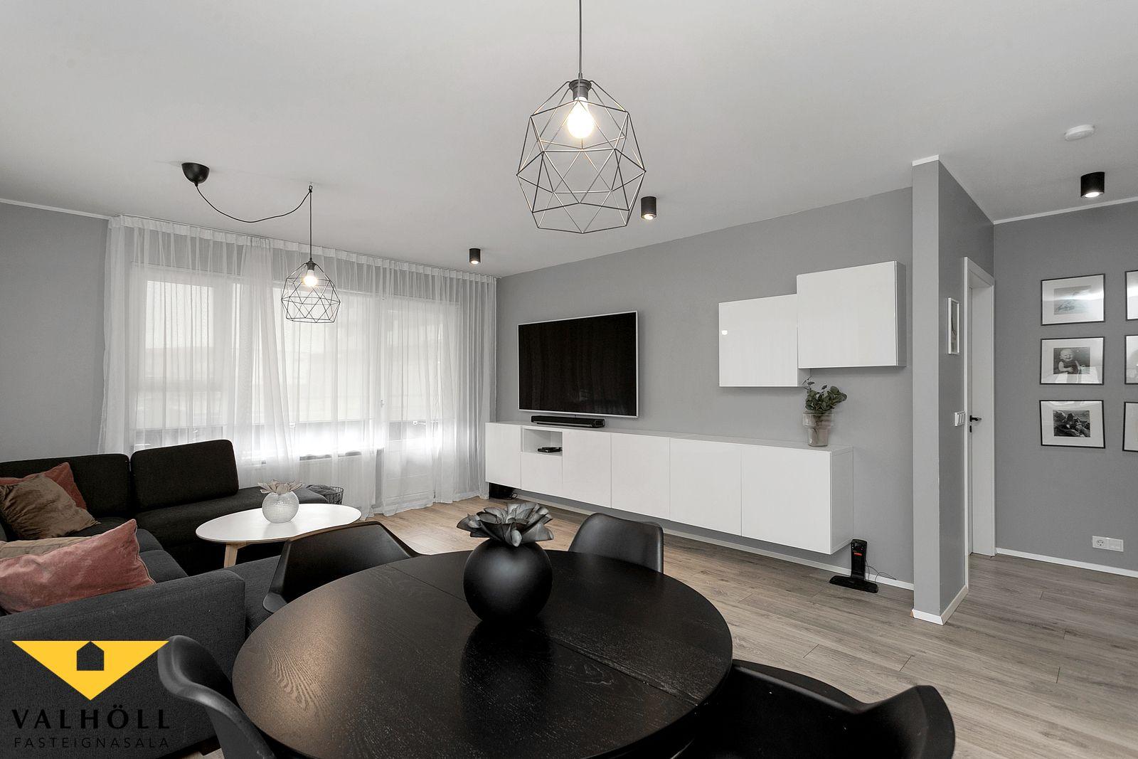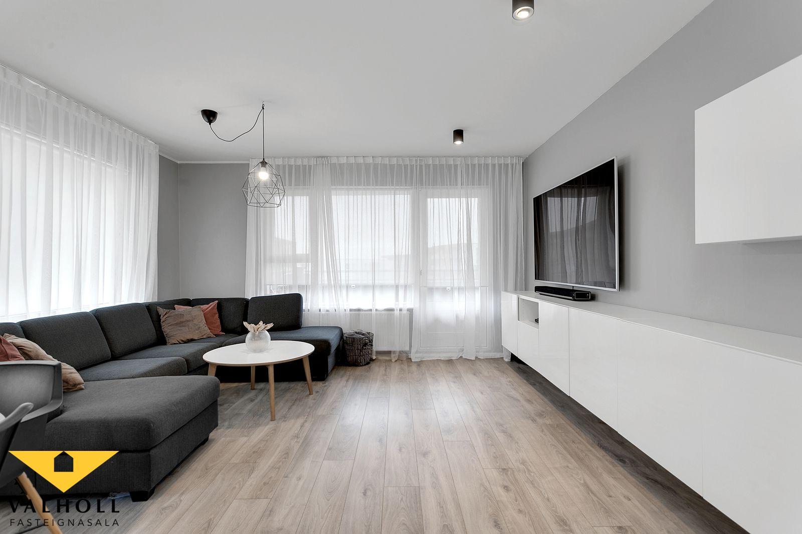 Vel skipulögð og falleg eign skráð skráð 115,4 m2. íbúð ásamt stæði í bílageymslu. Íbúðin er á miðhæð í þriggja hæða lyftuhúsi og fylgir stæði í bílageymslu. Mjög stutt eða um 100 metrar í grunnskóla og leikskóla.