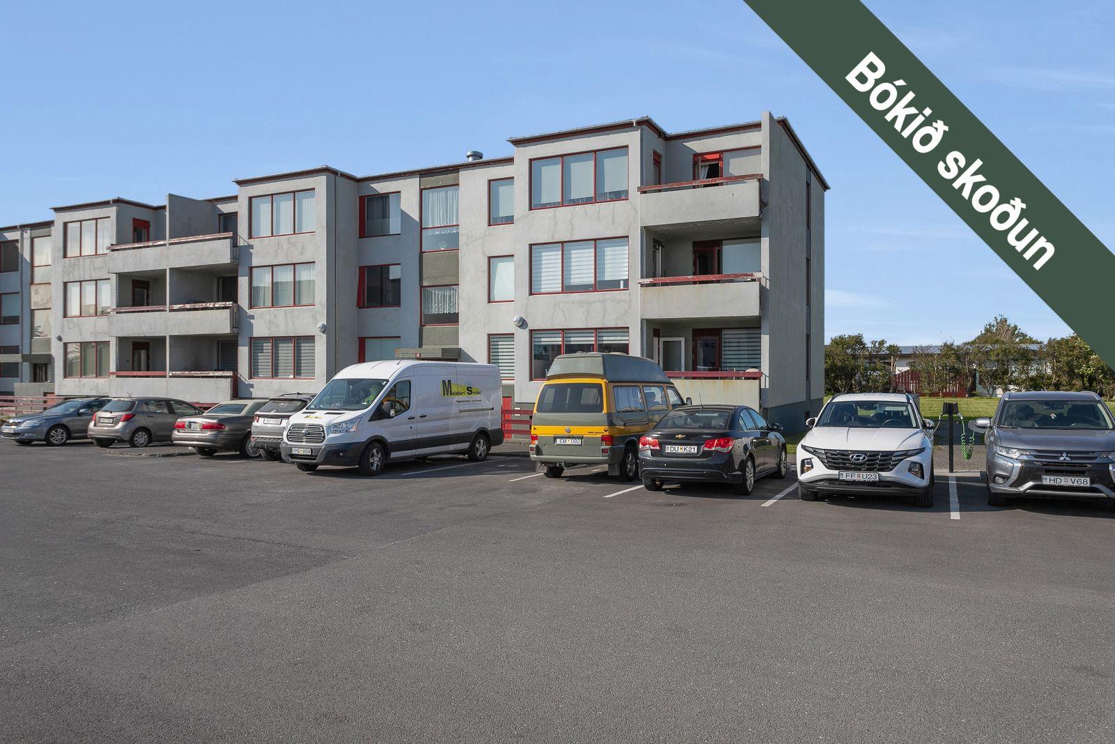 Nánari lýsing íbúðar. Opin forstofa með nýlegum fataskáp. Borðstofa og rúmgóð stofa í opnu og björtu rými, áður var fjórða herbergið þar sem borðstofa er í dag. Útgengt úr stofu á suðursvalir. Eldhús með fallegri nýlegri innréttingu. Innbyggður ísskápur og uppþvottavél fylgir. Spanhelluborð og tveir ofnar. Þvottahús inn af eldhúsi. Herbergjagangur með glugga í enda. Þrjú svefnherbergi. Nýir fataskápar í hjónaherbergi og hurð út á svalir. Baðherbergi flísalagt, innrétting, upphengt salerni og góð sturta. Virkilega notaleg íbúð í góðu ástandi.