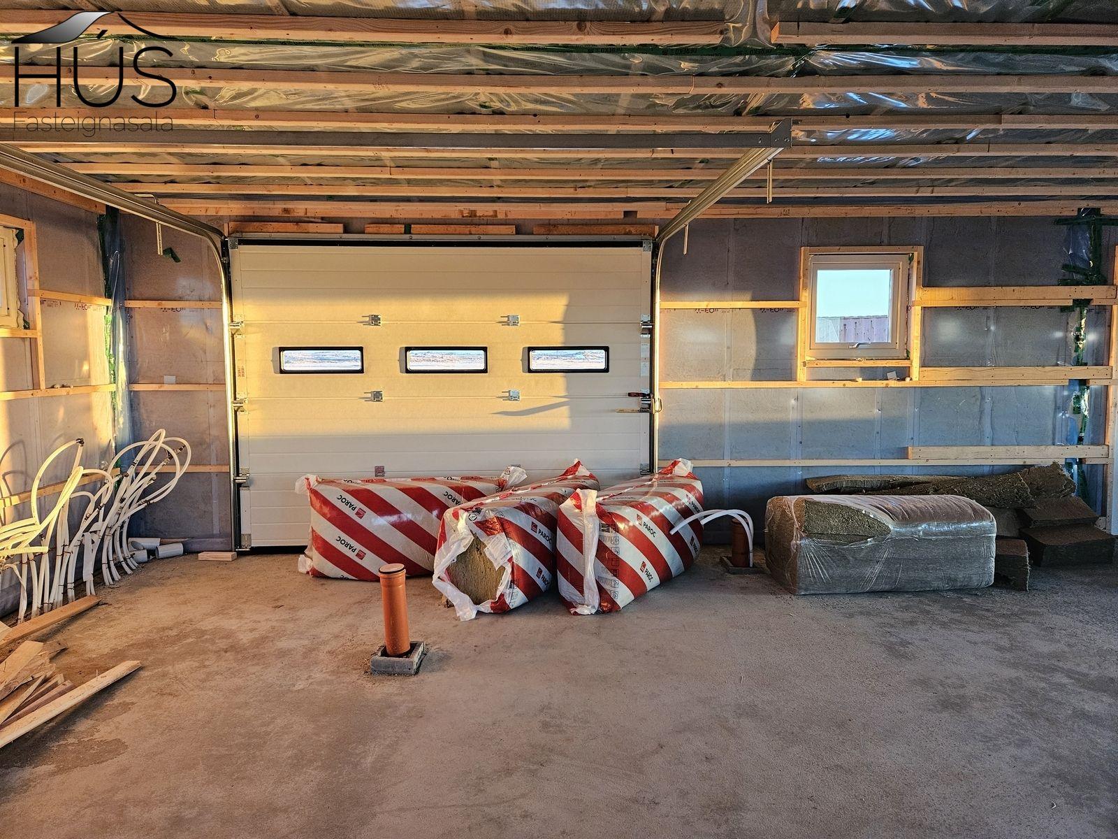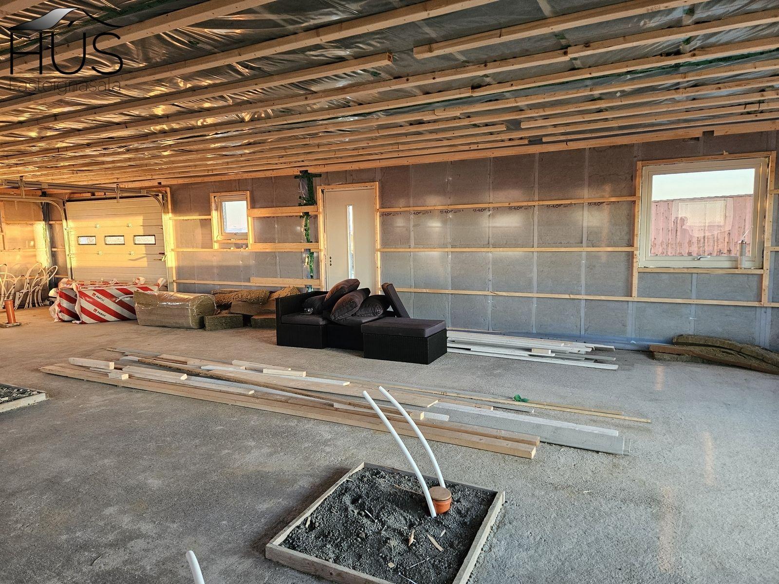 Húsið er komið með fokheldisúttekt en er komið lengra þar sem búið er að einangra og plasta úthring og setja upp rafmagnsgrind. Heimtaug rafmagns greidd. Gólfhitalagnir steyptar í gólfplötu. Gámur með byggingarefni fylgir með. (spónaplötur og gifs í innveggi)