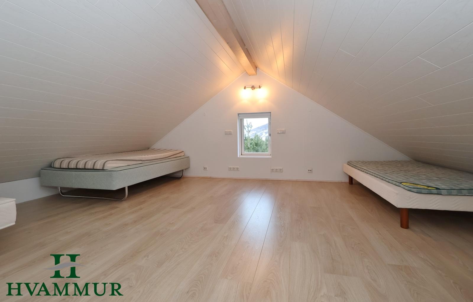 Húsið skiptist í forstofu, eldhús og stofu í opnu rými, sólstofu, tvö svefnherbergi, baðherbergi og svefnloft sem er yfir um helming hússins.