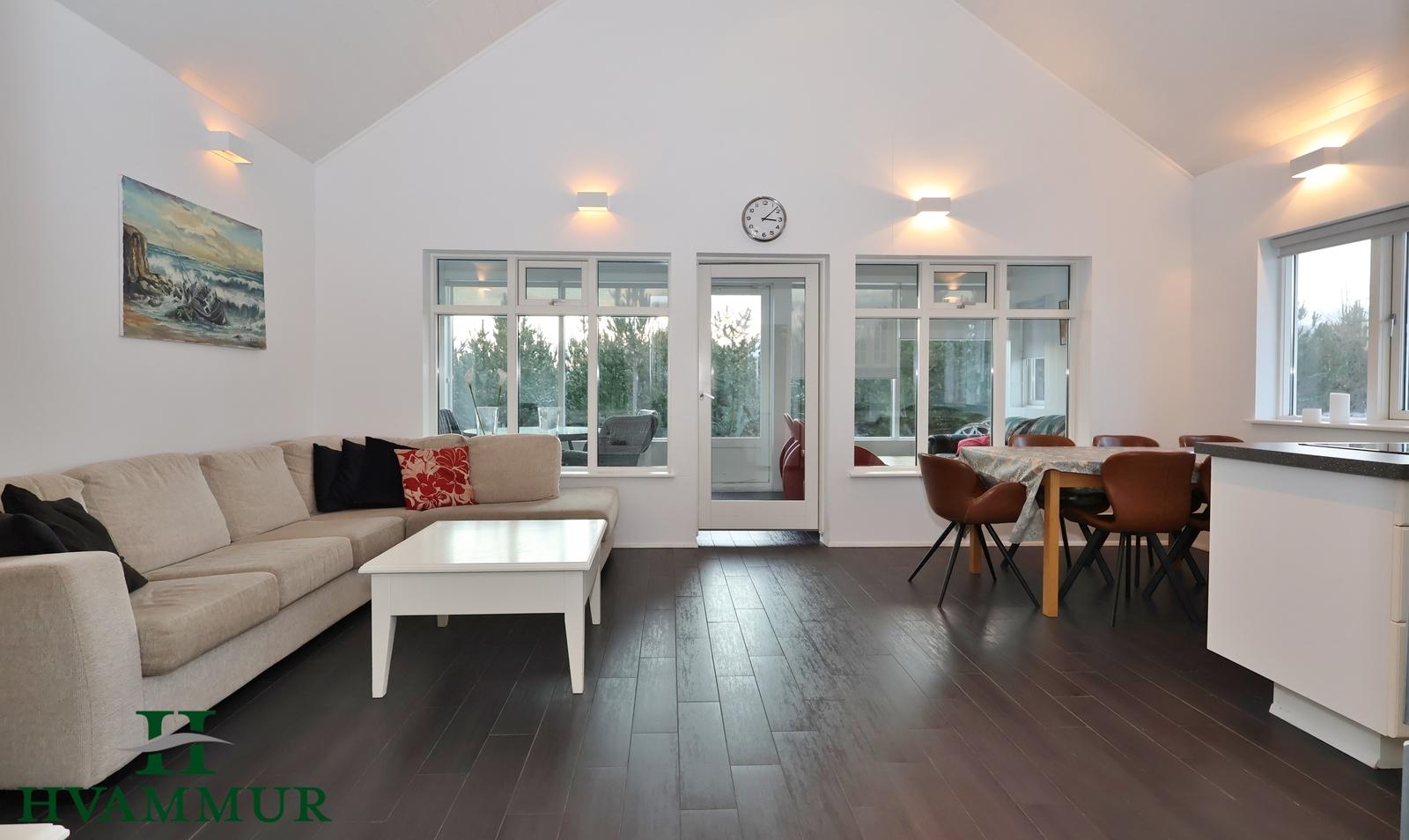 Annað - Timbur verönd er með öllum hliðum hússins. Heiturpottur/skel er á veröndinni. - Geymsluskúr, einangraður er við hliðina á húsinu. Þar eru hillur, stýrikerfi fyrir pottinn og aðstaða fyrir þvottavél. - Hitaveita er í húsinu. - Gróin og falleg eignarlóð á fallegum stað rétt við Vestmannsvatn.