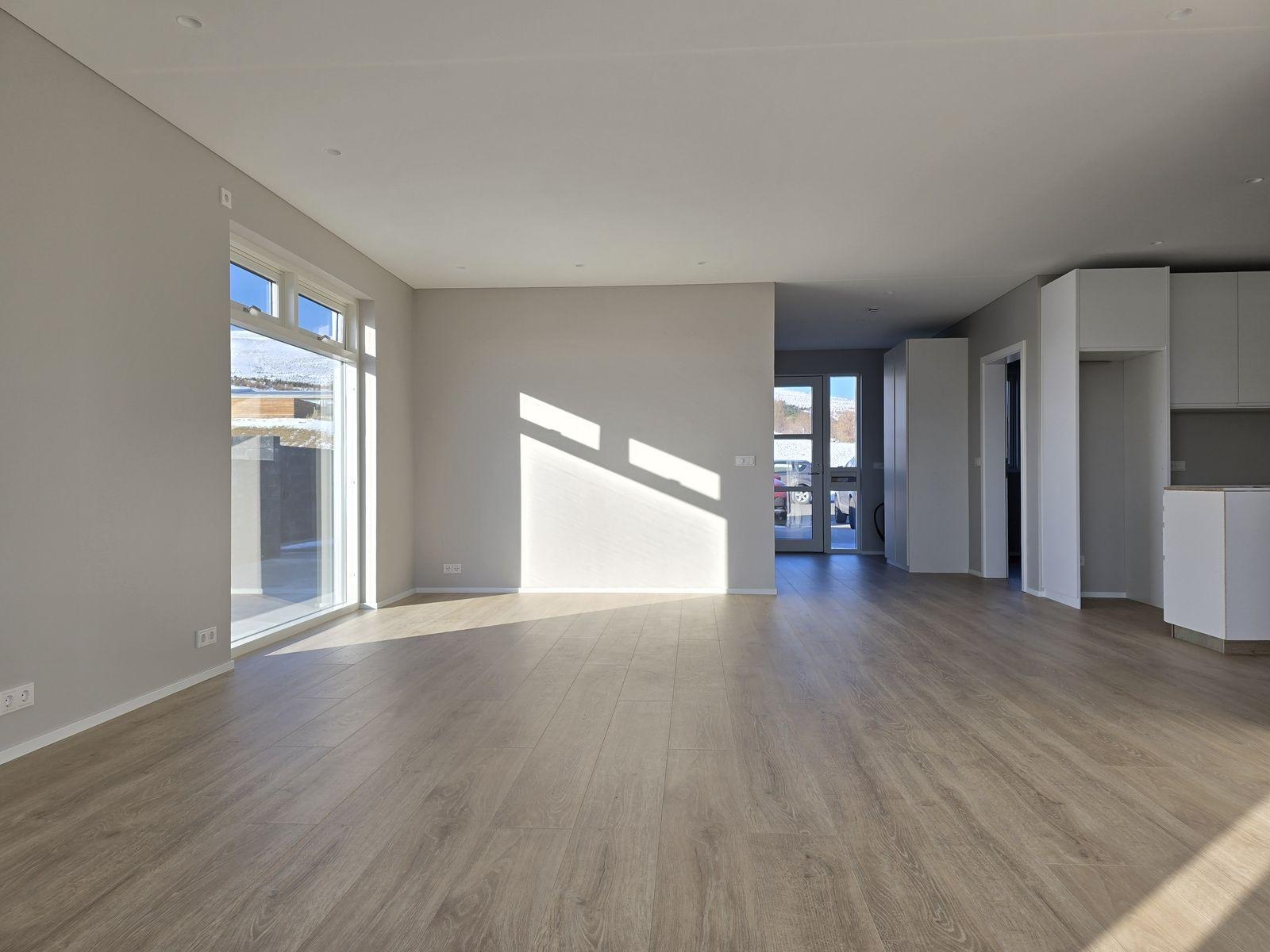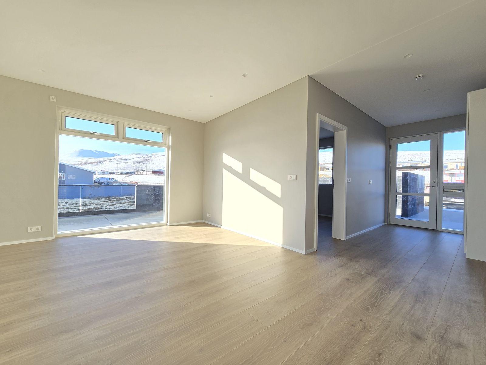 Eignin skiptist í 3 svefnherbergi, stofu og eldhús í sama rými, baðherbergi, þvottahús, forstofu og bílskúr. Komið er í parketlagða forstofu. Við forstofu eru tvö parketlögð herbergi og skápar í þeim. Í eldhúsi er hvít innrétting og eyja frá IKEA og gott skápapláss. Í hlut kaupanda kemur að velja harðplast-borðplötu, bakaraofna og helluborð frá AEG eða sambærilegt. Kjósi kaupandi að taka dýrari borðplötu eða tæki greiðir hann mismuninn. Ískápur og uppþvottavél fylgja ekki. Rúmgóð, parketlögð stofa er í suðausturhorni hússins. Svalahurð út á pall frá stofu. Gluggar eru í suður og austur. Herbergi og baðherbergi eru við gang frá eldhúsi og að þvottahúsi. Á gangi er hægt að koma fyrir skápum eða fatahengi. Herbergi er parketlagt og með góðum skápum. Á baðherbergi eru flísar á gólfi og veggjum. Baðherbergi er rúmgott og vel skipulagt, með bæði walk in sturtu og baðkari. Blöndunartæki eru frá Grohe og eru innbyggð í sturtu og við baðkar. Innrétting er hvít og frá Fríform. Spegill með LED lýsingu. Í þvottahúsi eru gráar flísar á gólfi og hvít innrétting frá IKEA fyrir þvottavél og þurrkara. Gott skápapláss. Vaskur í innréttingu. Frá þvottahúsi er gengið út á pall að austan. Bílskúr er með epoxi á gólfi.