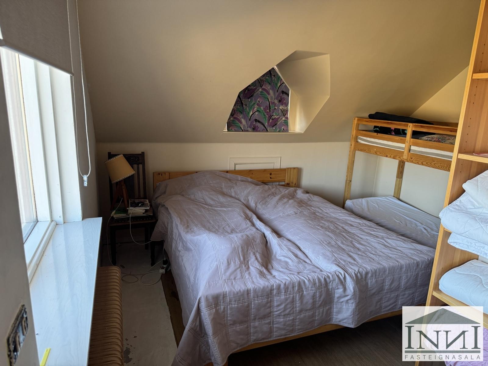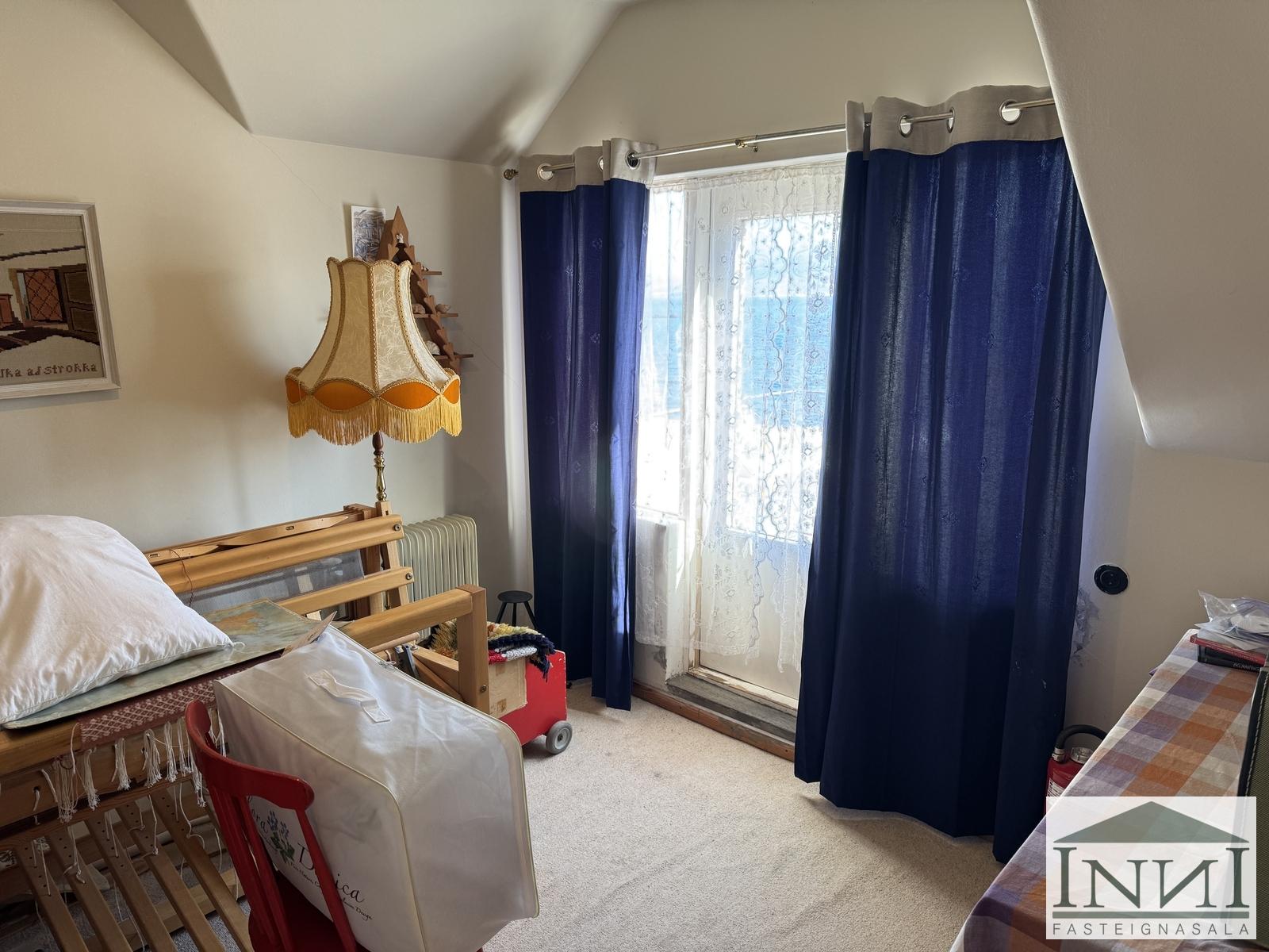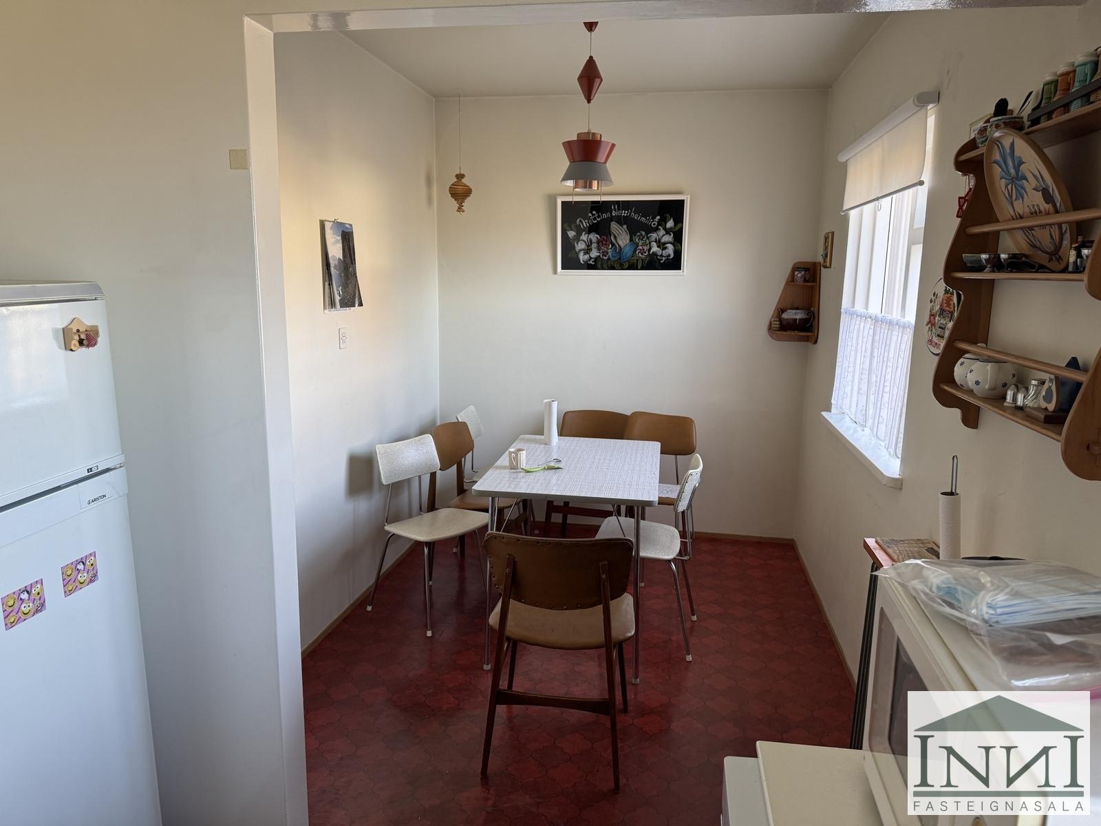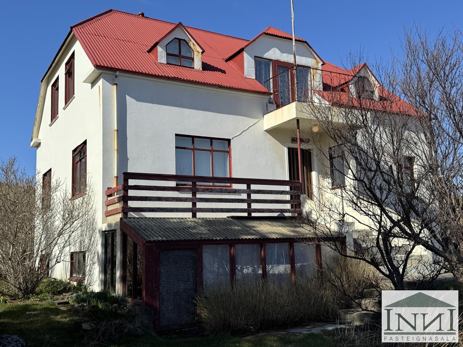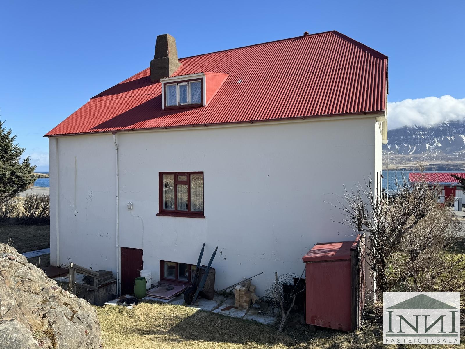 Einbýlishús á þremur hæðum með fimm svefnherbergjum við Kolbeinsgötu á Vopnafirði. Gengið er upp stiga og komið inn á miðhæð hússins. Þar er komið inn í forstofu með dúk á gólfi og fatahengi. Þaðan er komið á gang og til vinstri er rúmgóð stofa með parketi á gólfi. Á hæðinni er eitt rúmgott svefnherbergi með parketi á gólfi. Til hægri frá gangi er baðherbergi með klósetti, baðkari með sturtuhengi og frístandandi vaski. Innst á ganginum er eldhús með dúk á gólfi og upprunalegri innréttingu þar sem háfur er fyrir ofan eldavél. Inn af því er lítið búr sem nýtist vel. Borðstofa er einnig inn af eldhúsi. Gengið er upp steyptan stiga með handriði á efri hæð og þar er komið í dúkalagt rými. Á efri hæð eru þrjú svefnherbergi, tvö þeirra nokkuð stór með dúk á gólfum og hið þriðja með teppi og þar er útgengt á svalir sem snúa að hafinu og eru með útsýni yfir fjörðinn. Herbergin eru að hluta til undir súð. Frá holi á efri hæð er lítið salerni. Á norður enda hæðarinnar er stórt rými sem nýtt hefur verið sem herbergi en þar er líka innrétting með vaski og skápum. Til að fara á neðstu hæðina er gengið niður steyptan stiga og komið á gang sem er einnig með steyptu gólfu. Frá honum er geymsla með vaski, þvottahús og smíðakompa. Frá þvottahúsi er útgengt í garð. Einnig er kyndikompa með hitakút og steyptu gólfi á kjallarahæðinni. Þá er óklárað rými á hæðinni sem eitt sinn var bílskúr. Búið er að einangra, klæða og múrhúða norðurhlið hússins og hluta austurhliðarinnar. Skipt hefur verið um glugga í hluta af húsinu. Nýtt vatnsinntak er í húsinu. Hús sem er að mestu leyti upprunalegt.