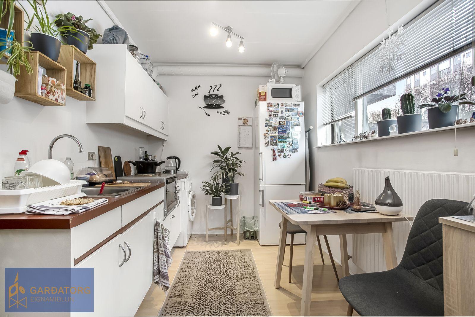 Aukaíbúð: Í kjallara fylgir studioíbúð skráð 28.1 fermetri með wc, sturtu og eldhúskrók og er í útleigu.