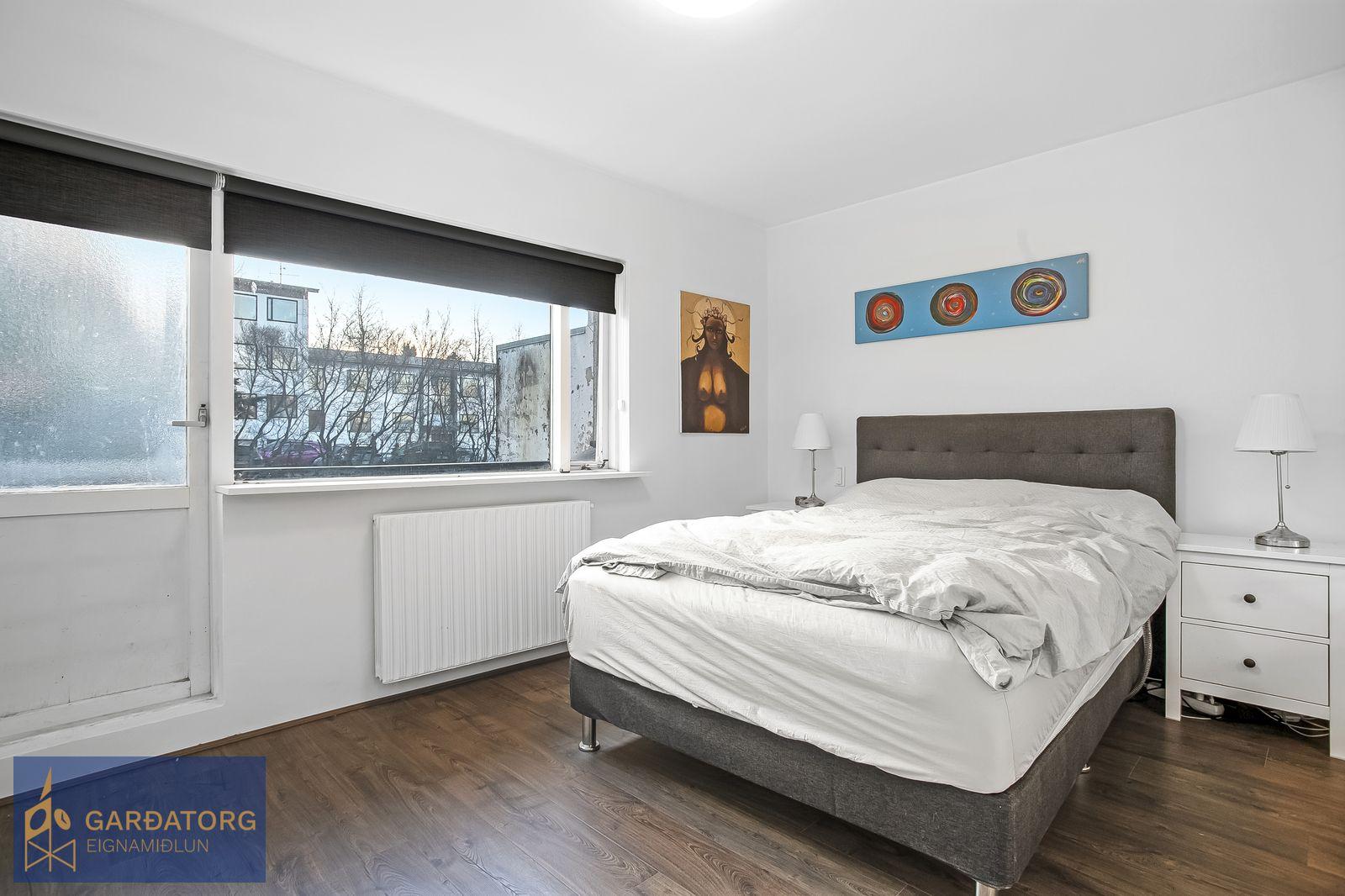 Svefnherbergi: Tvö herbergi með góðum gluggum, harðparket á gólfum.