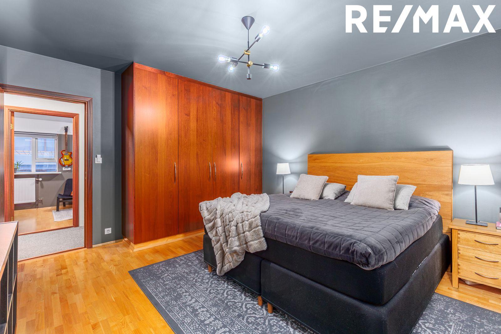 Gengið er upp steyptan og teppalagðan stiga á efri hæð:Hjónaherbergi: er rúmgott, parketlagt og með góðum fataskápum. Úr hjónaherbergi er útgengi á svalir til suðurs.