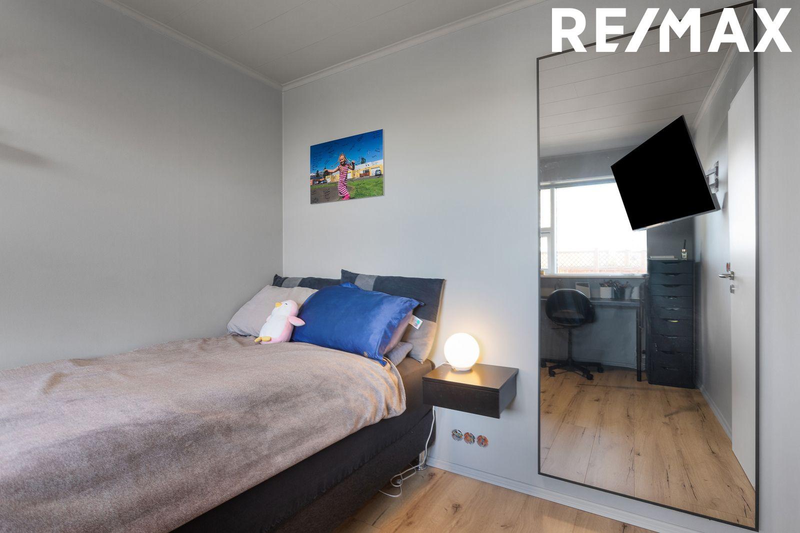 Hjónaherbergi: Hjónaherbergið er rúmgott með vönduðu harðparketi á gólfi og góðum sexföldum fataskáp sem nær upp í loft.