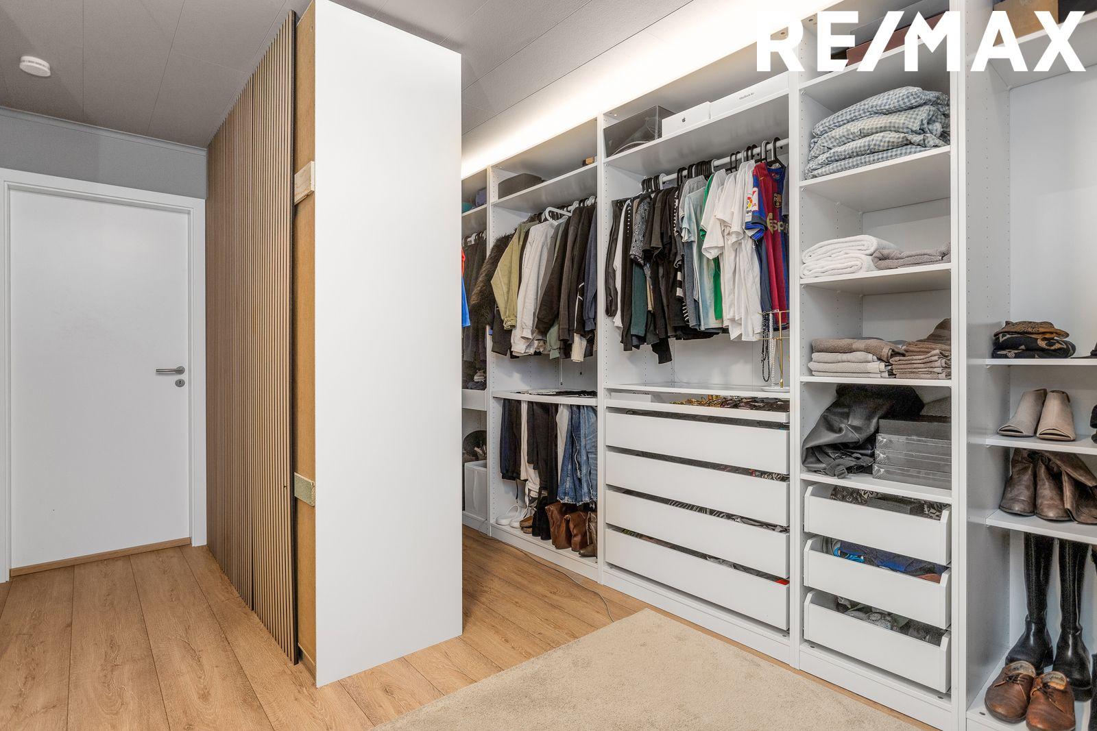 Fataherbergi: Inn af miðju holinu á hæðinni er stórt og rúmgott fataherbergi sem nýtist öllum herbergjum eignarinnar.