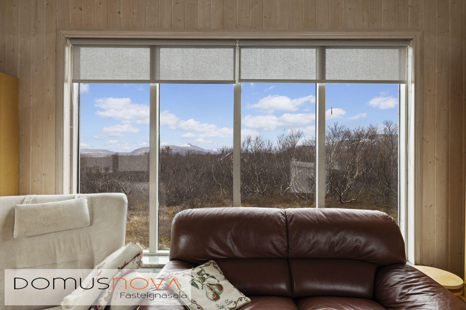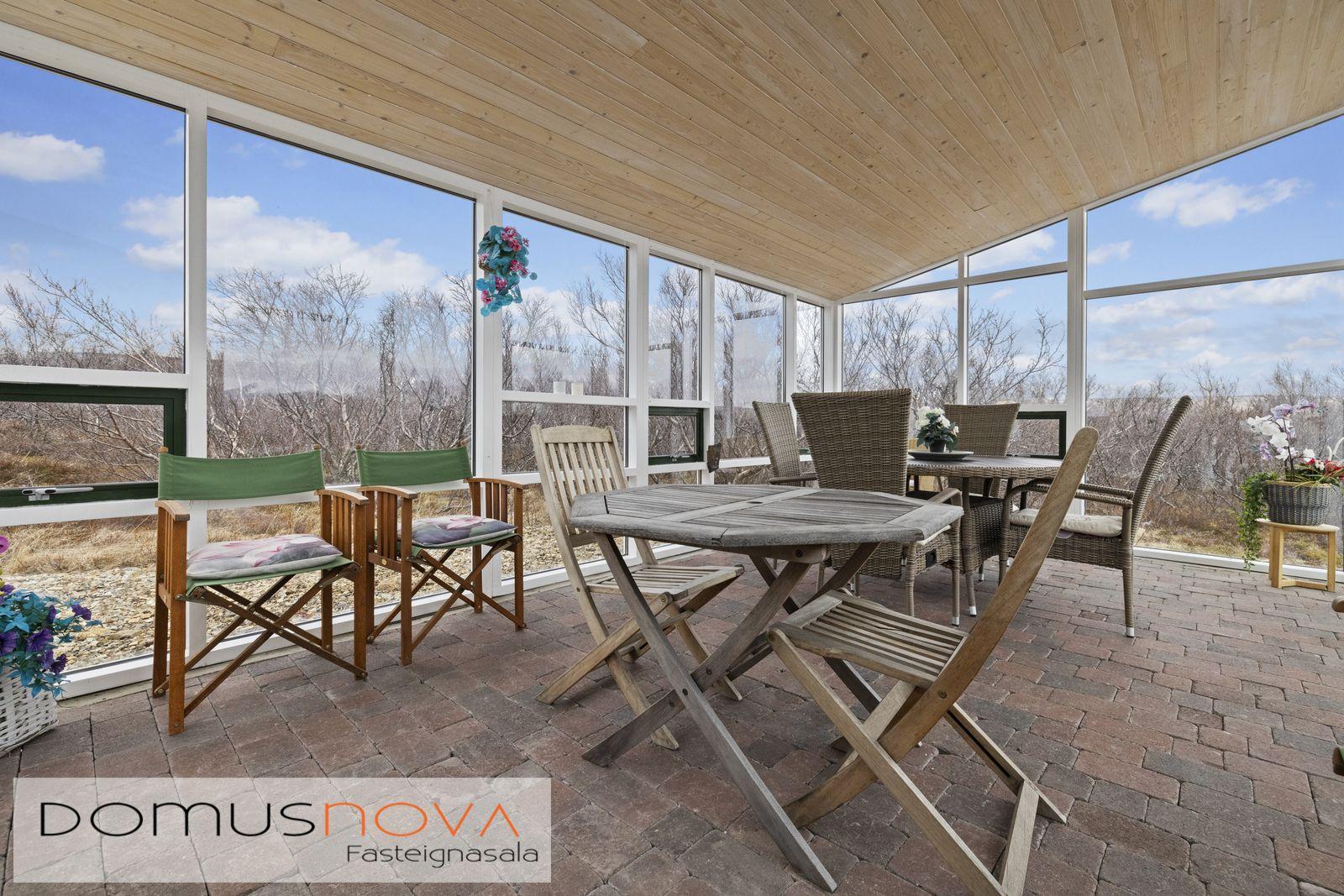 Eignin stendur á 6.500 fm leigulóð í landi Stóra-Áss, er kynnt með hitaveitu og er með heitum potti á verönd.