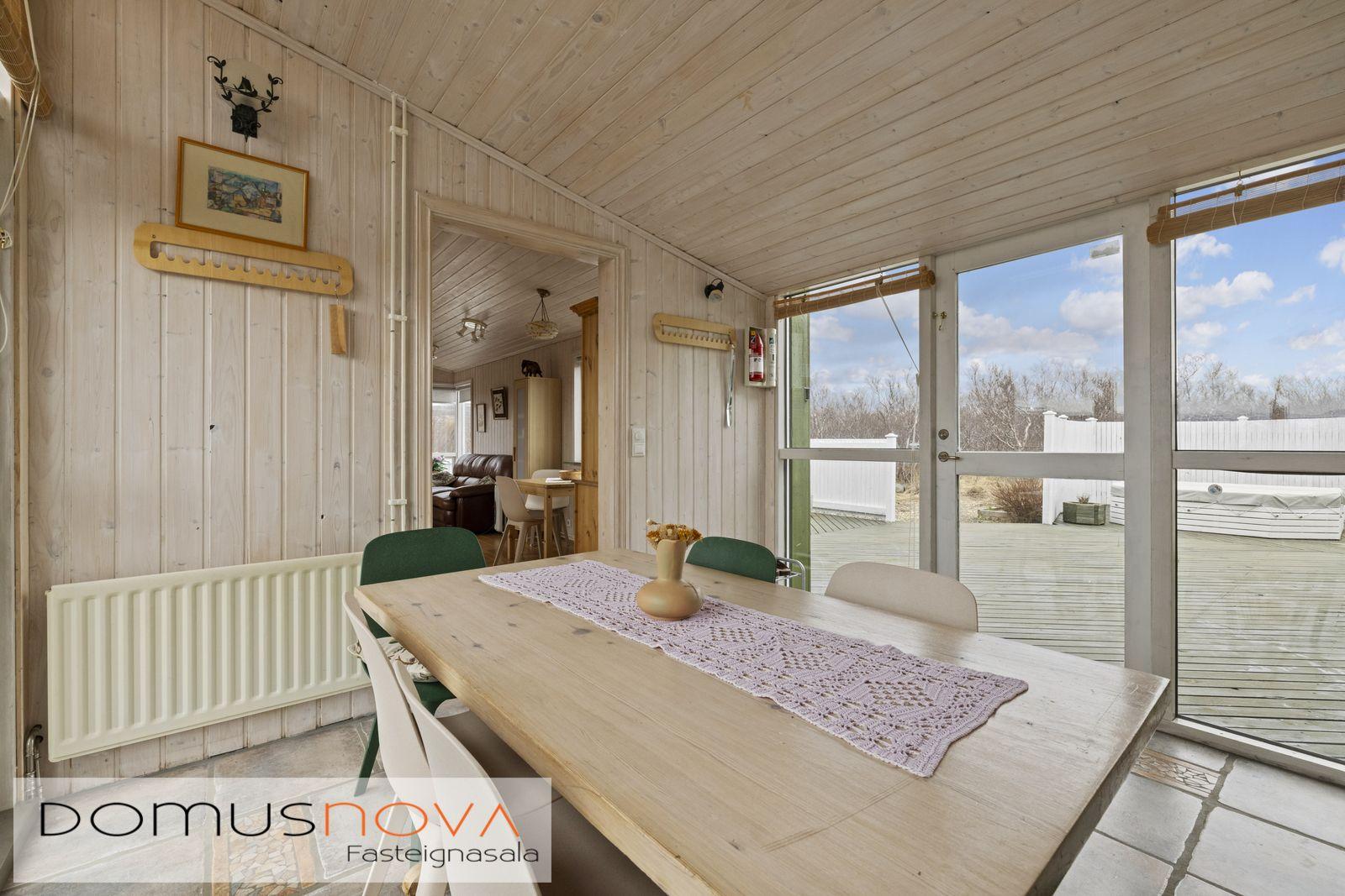 Eignin samanstendur af aðalhúsi að stærð 76,8 fm og gestahúsi/glerskála/vinnustofu að stærð 22 fm.