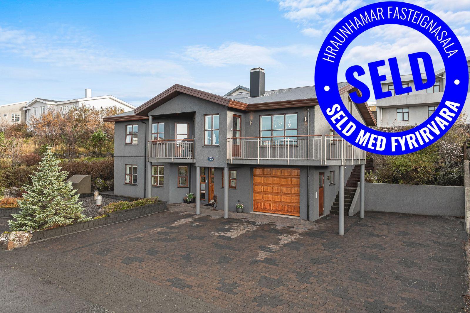 Hraunhamar fasteignasala og Helgi Jón Harðarson sölustjóri s. 893-2233 helgi@hraunhamar.is kynna: Glæsilegt og velbyggt tvílyft einbýli með innb.bílskúr samtals 293.3 fm á þessum eftirsótta stað í sunnanmegin í Áslandinu Hfj. Frábær staðsetning og útsýni. Falleg aðkoma og næg bílastæði (hellulögð) Mikil veðursæld.