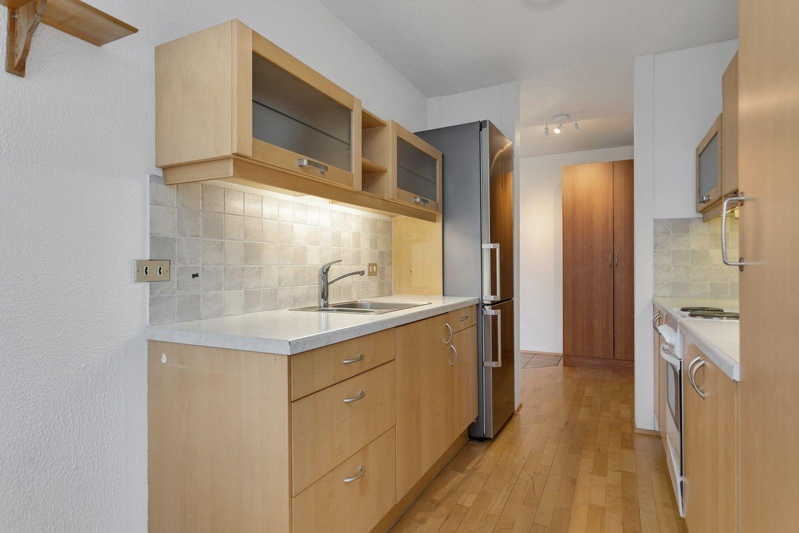 Eldhús með snyrtilegri innréttingu, borðkrókur í eldhúsi.