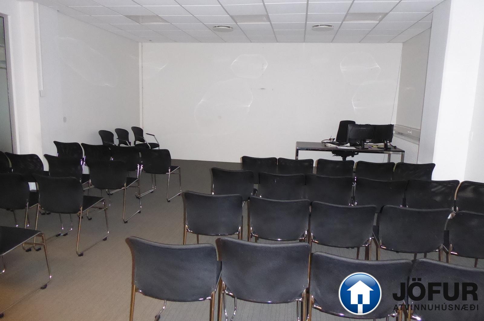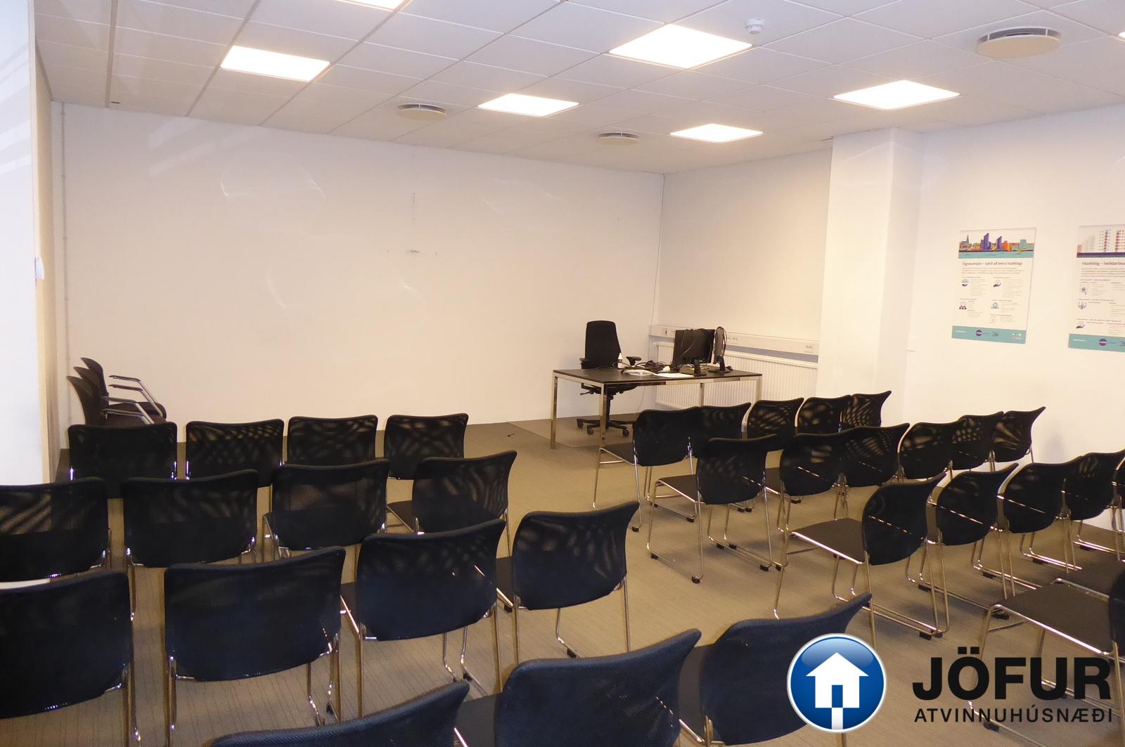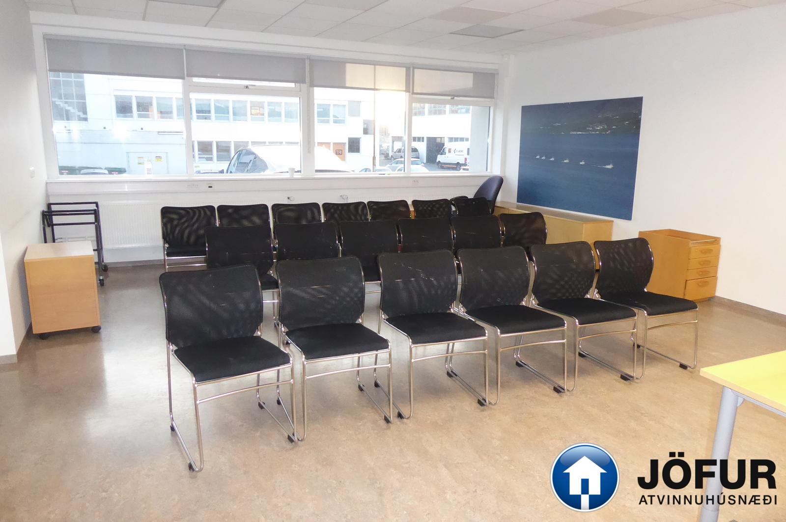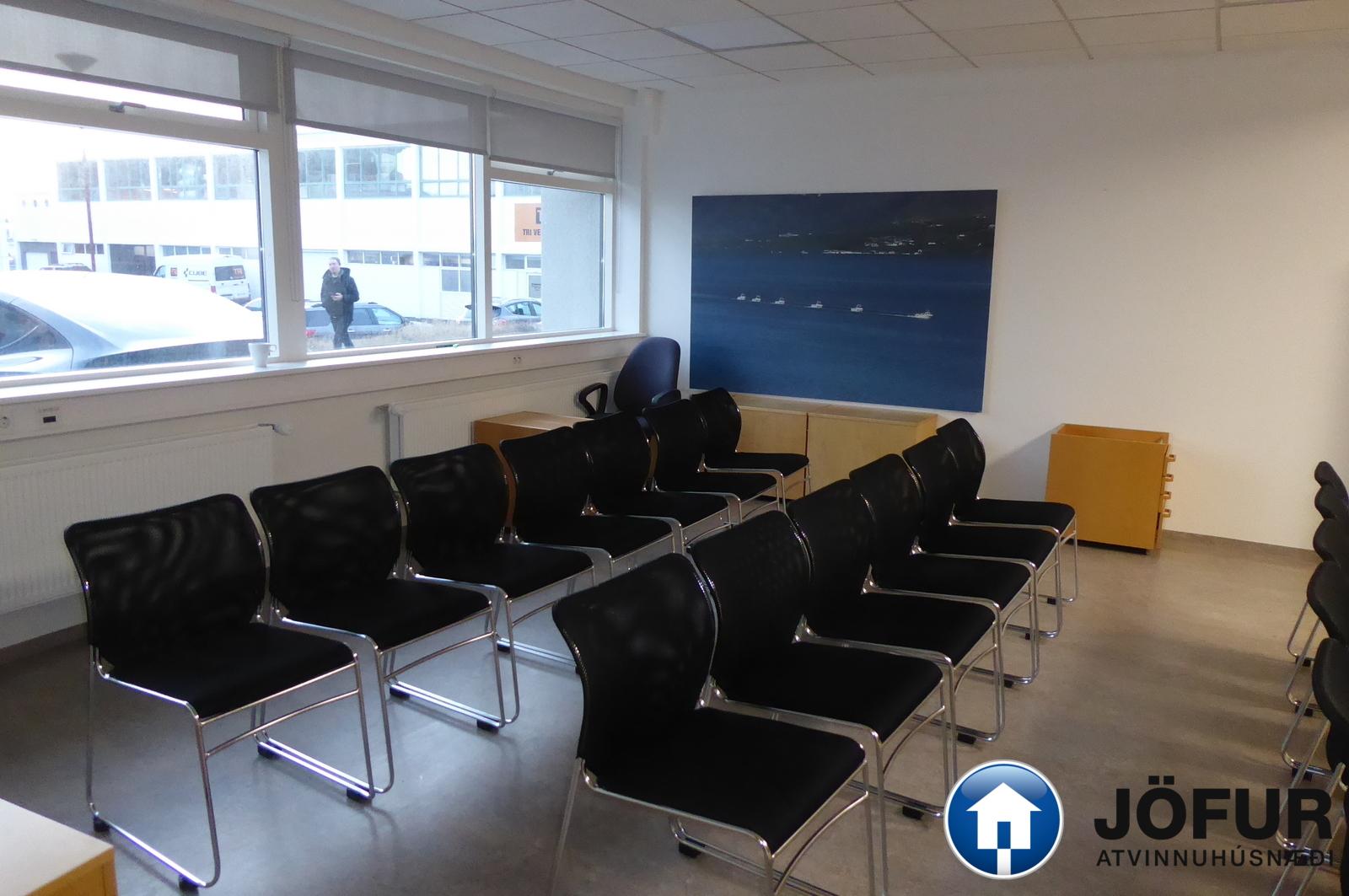 Nánari lýsing: Húsnæðið skitptist upp í tvö skrifstofurými sem hægt er að opna á milli og gera að einu. Á gólfum eru teppaflísar, kerfisloft og lýsing í loftum. Eldhús- og snyrtiaðstaða er í sameign. Í kjallara er hjólageymsla, búnings- og sturtuaðstaða. VSK leggst við leigufjárhæðina.
