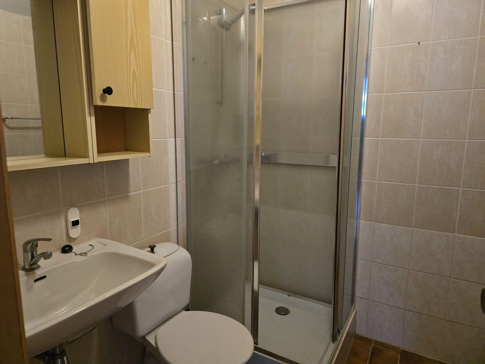 Fasteignin skiptist í þrjú herbergi, stofu, eldhús og þar við búr, þvottahús og forstofu.