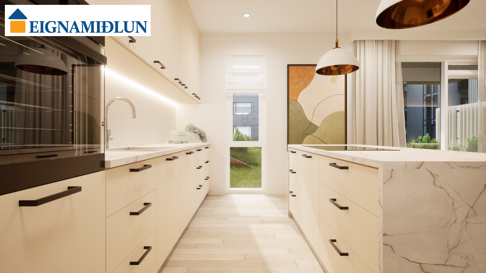Íbúðirnar verða afhentar án gólfefna, nema á votrýmum sem verða flísalögð. Eldhúsinnréttingar eru sérsmíðuð af vandaðri gerð frá Axis.