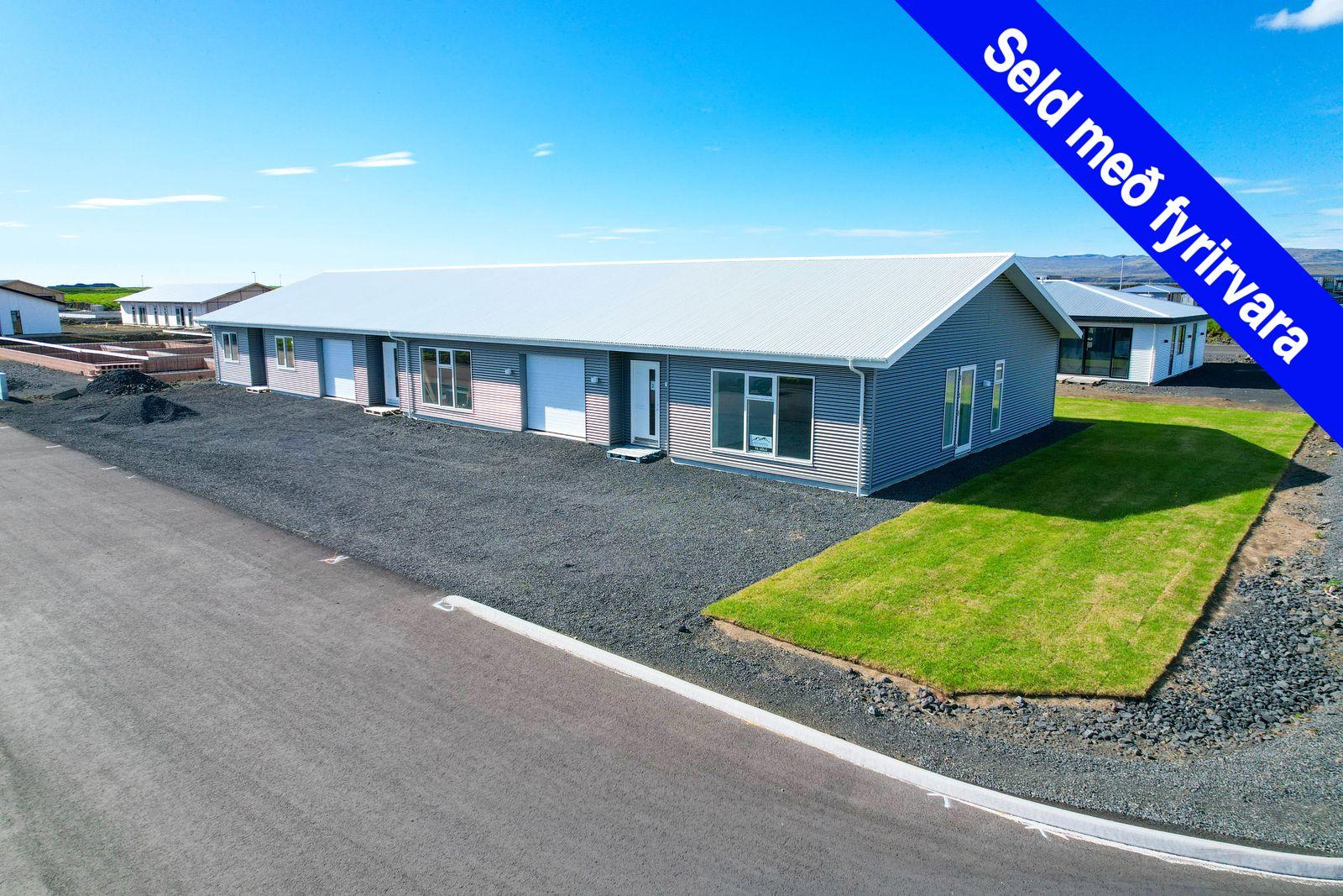 Húsið: Húsið er byggt 2025 og er úr úr timbri og klætt með grárri álklæðningu og hvítum álþakköntum, járn er á þaki. Innfelld lýsing er í flestum rýmum. Gólfhiti er í húsinu og hitastýringar eru í öllum rýmum. Ídráttarrör er komið fyrir heitan pott á baklóð.