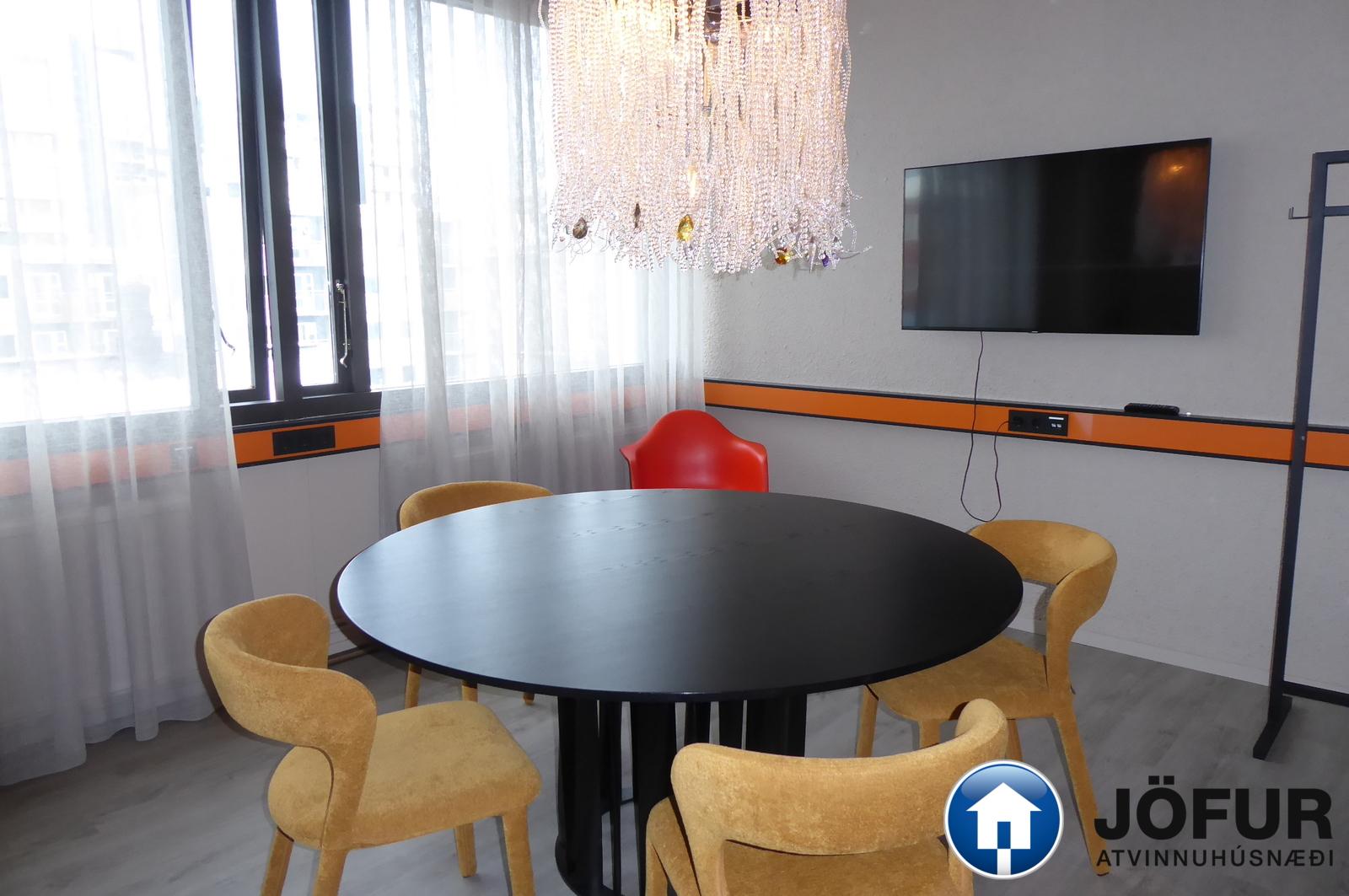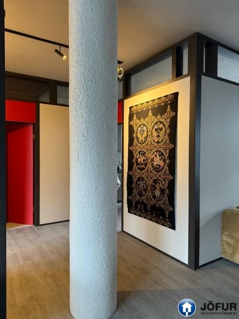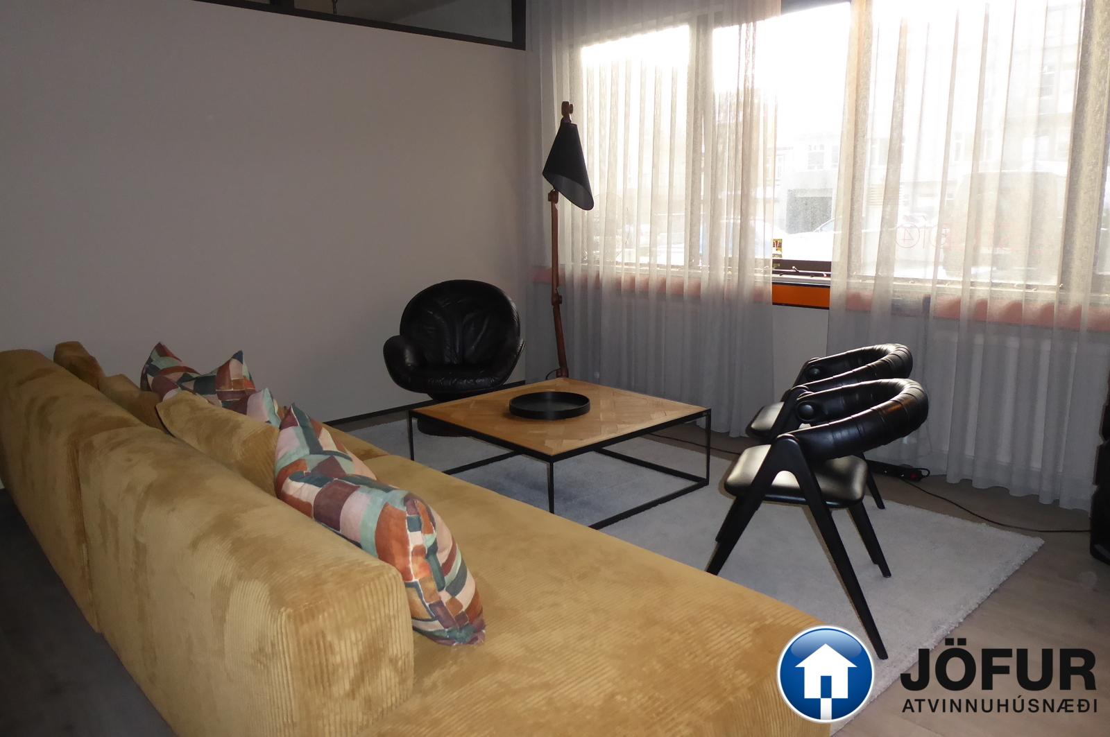Nánari lýsing: Húsnæðið er að mestu opið skrifstofurými með gluggum á tvo vegu, ein lokuð skrifstofa/ fundarherbergi, rúmgott eldhús með stórum borðkrók og snyrting með sturtu. Á gólfum er vínilparket. Húsnæðið er mikið endurnýjað s.s. gólfefni. innréttingar, raflagnir, ljós og tenglar. Stigagangur hússins nær niður að Hverfisgötu og er lyfta til staðar sem nær upp á 2. hæð, stigi er á milli 2. og 3. hæðar. Tvö sérmerkt bílastæði fylgja á bílastæði framan við hið leigða rými á baklóðinni með aðkomu um sund frá Laugavegi 39. Hægt er að leigja húsnæðið með húsgögnum að hluta. VSK leggst ekki við leigufjárhæðina.
