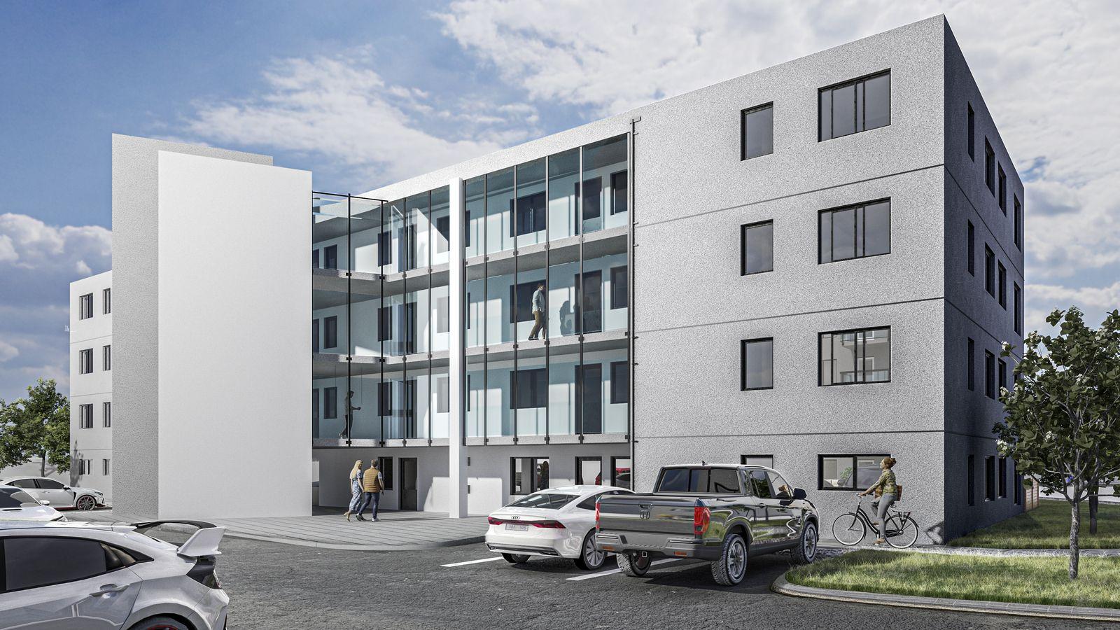 Víkurmói 4 á Selfossi er vandað fjölbýli með lyftu á fjórum hæðum með samtals 23 íbúðum með sérinngangi af stétt/svalagangi.