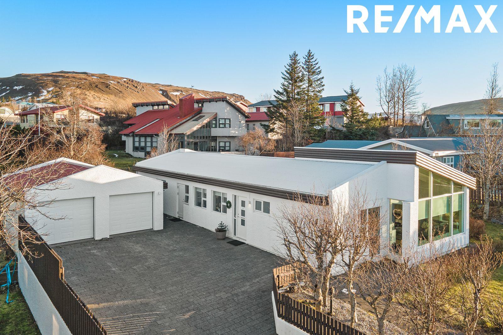 Fasteignamat 2026 er kr.127.900.000.Nánari lýsing:Andyri: Gengið inn í flísalagt andyri og þaðan beint inn í alrými.