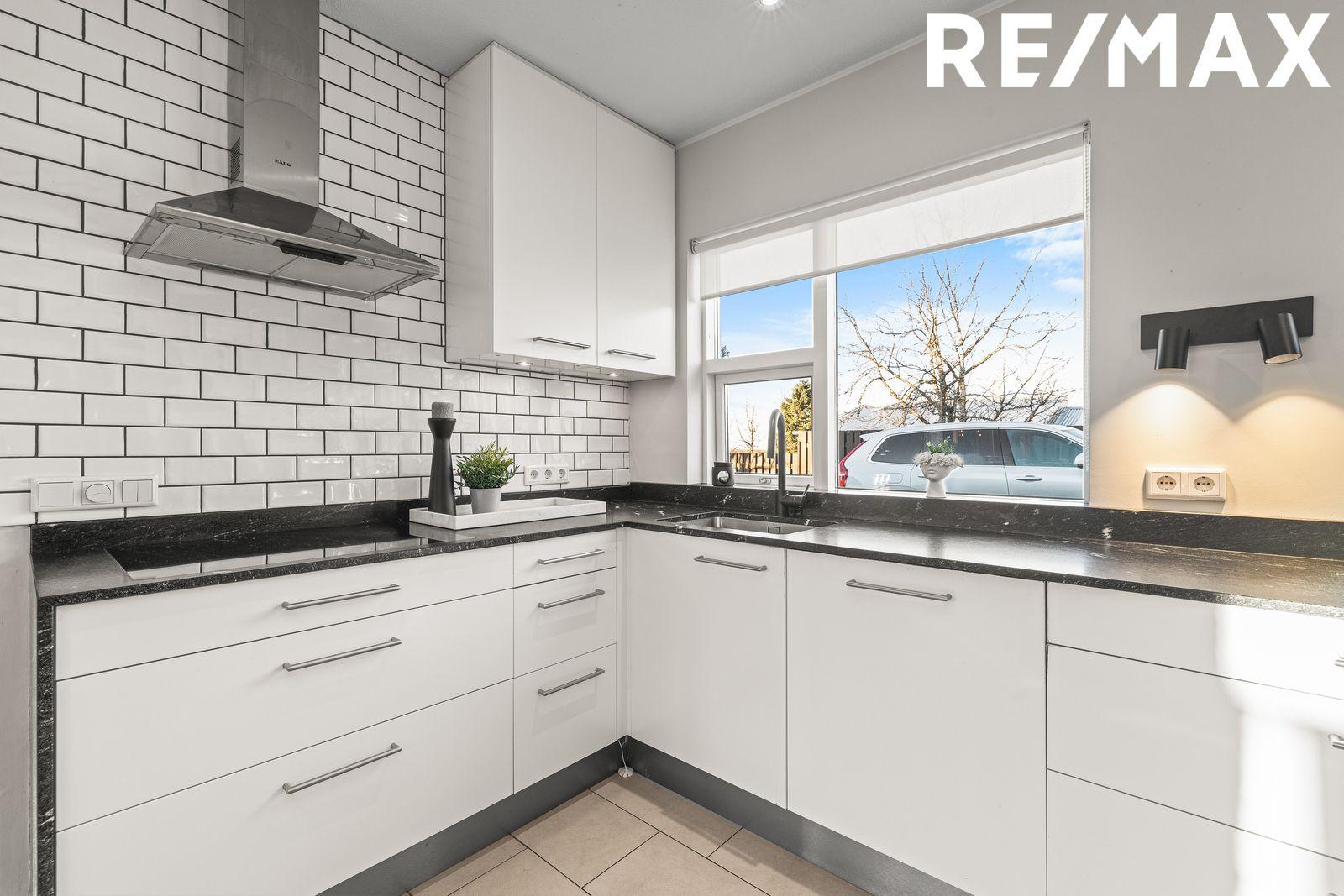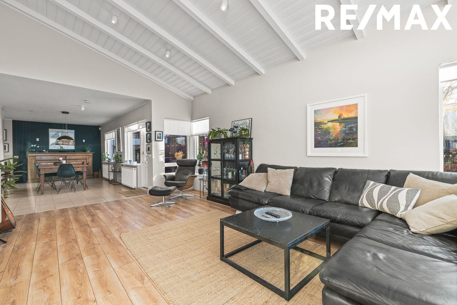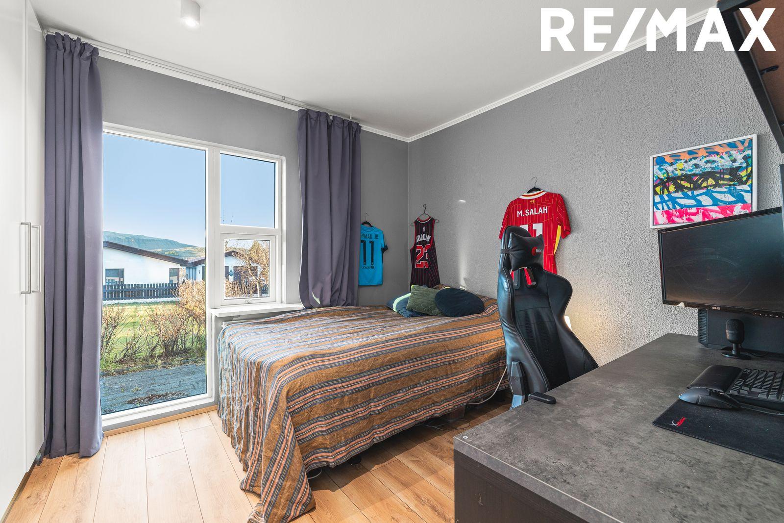 195,8 m² og samanstendur af forsofu, eldhúsi, stofu / borðstofu með útgengi út í garð með sólpalli, herbergisgangi með 3 svefnherbergjum (geta verð 4-5), 2 baðherbergjum, geymslu / þvottahúsi og bílskúr (52,9 m²).