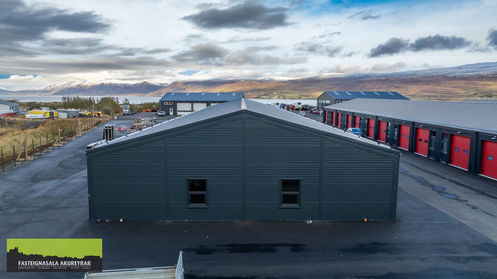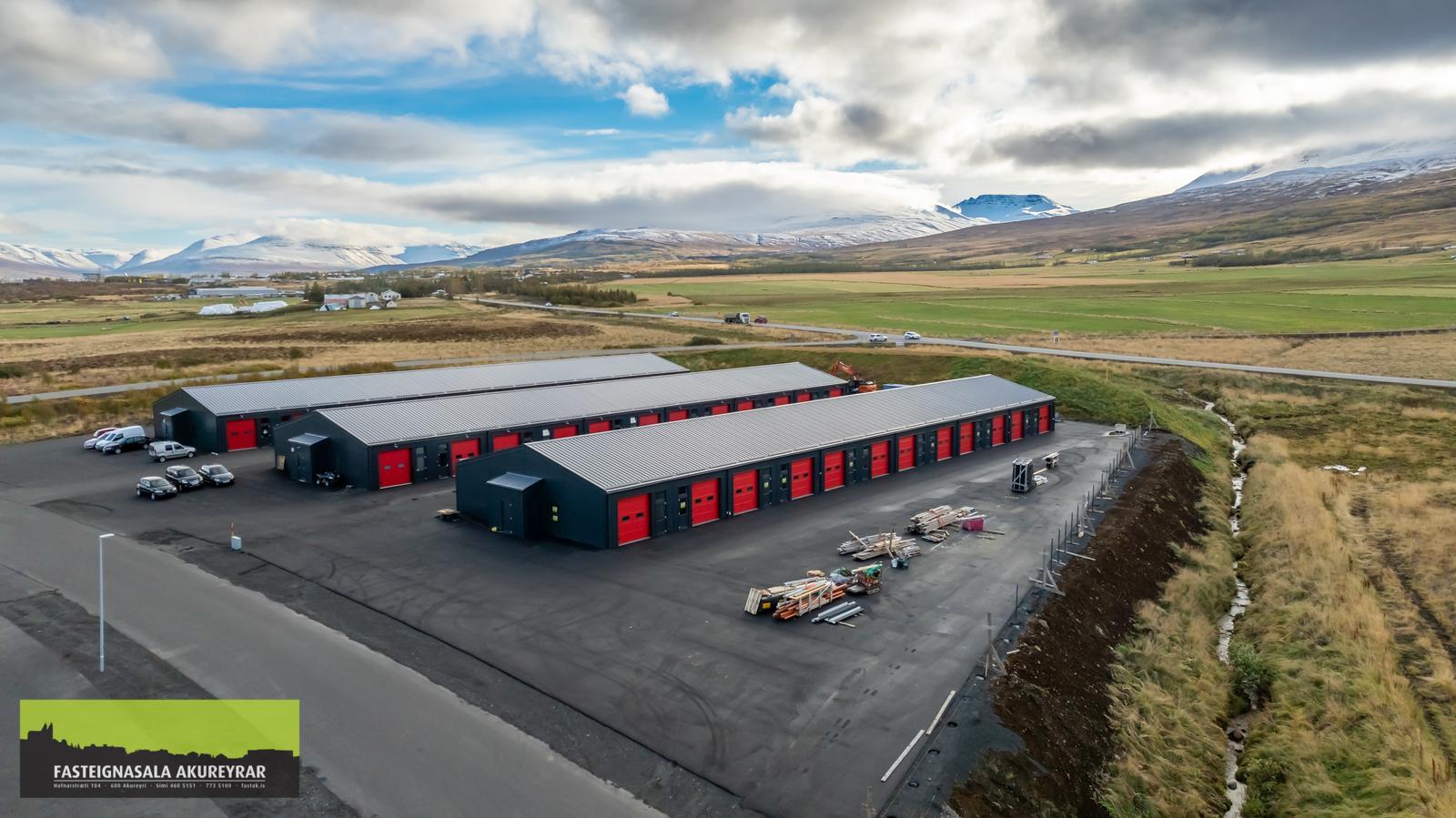 Nú er rétti tíminn til að tryggja sér geymslubil fyrir veturinn, afhending 1. nóvember 2024 Lækjarvellir 1c Geymslan er 45,2 m2 og er með vélslípuðu gólfi, upphitun er með vatnsofni, rafmagn er lagt „í töflu“ og eitt ljós og útilýsing. Inntak fyrir heitt og kalt vatn. Niðurfall við útihurð og innst er gert ráð fyrir snyrtingu, lagnir að og frá. Hæð húss upp í mæni er 5,83 metrar. Hæð innkeyrsluhurðar er 3 metrar og breidd er 3 metrar og verður hún rafdrifinn og einnig verður ein inngangshurð. Stærð: 45,2m2, innanmál er 5,53 metrar á breidd og 7,82 metrar á lengd. Geymsluhúsnæði á einni hæð sem stendur á steinsteyptum sökkli. Burðarvirki er úr stálrömmum. Útveggir eru úr yleiningum, kjarni er polyurithane PIR sem festar eru á burðarkerfi úr stálprófílum. Innveggir er úr samloku eignar með steinull á milli hólf. Sameign allra Í matshlutanum er í sameign allra tæknirými merkt 0125. Einnig er í sameign allra allt ytra byrði matshlutans ásamt öllum lögnum, svo sem fyrir heitt/kalt vatn, skólp, rafmagn, síma, loftnet og fl. sem þjóna sameiginlegum þörfum og þörfum heildarinnar, án tillits hvar þær eru í húsinu. Kostnaður vegna sameignar allra skiptist eftir hlutfallstölu í sameign allra mhl 01. Sameign allra er lituð með gulum lit á teikningum. Hita og rafmagnskostnaður. Hita og rafmagnskostnaður Í matshlutanum eru tuttugu og fimm rafmagnsmælar sem mæla rafmagnsnotkun fyrir alla matshluta. Það er einn rafmagnsmælir fyrir hverja séreign og einn mælir sem mælir rafmagnsnotkun fyrir sameign allra og alla útilýsingu við matshlutann og lýsingu á lóð. Hver séreign greiðir samkvæmt sínum mæli en kostnaður vega sameignarmælis skiptist að jöfnu á milli allra séreigna í matshlutanum. Rafmagnsinntak og rafmagnsmælar eru staðsett í tæknirými 0125. Í matshlutanum er einn heitavatns rennslismælir sem mælir heitavatnsnotkun fyrir alla matshluta. Hitakostnaði er skipt eftir brúttó rúmmáli upphitaðra rýma og er það tekið fram í eignalýsingum séreigna sem hlutfallstala í hitakostnaði. Öll séreignarrými í matshlutanum eru upphituð. Tæknirými 0125 reiknast ekki hlutfall í hitakostnaði þar sem rýmið tekur hita frá hitagrind sem staðsett er í rýminu. Heitavatnsinntak og rennslismælir eru staðsett í tæknirými 0125.