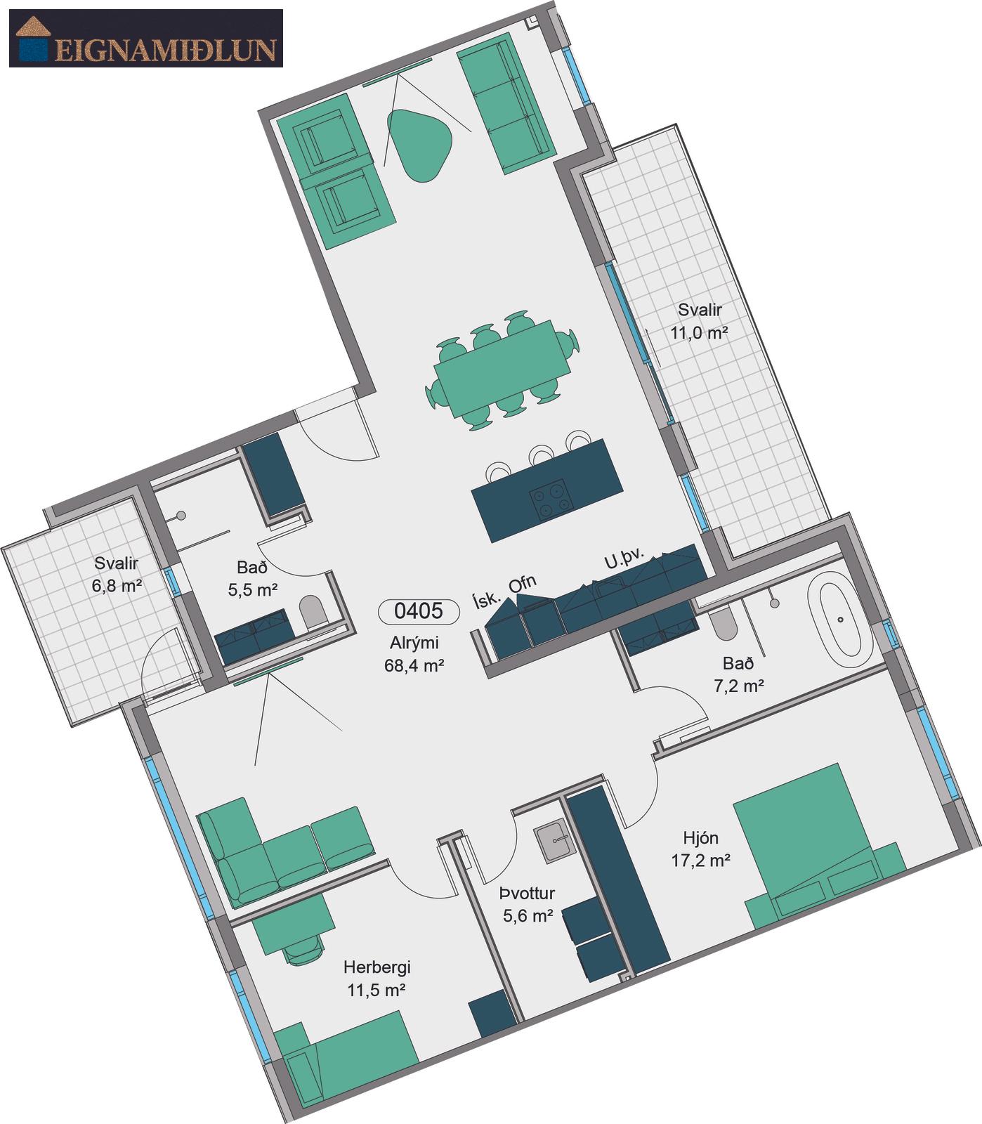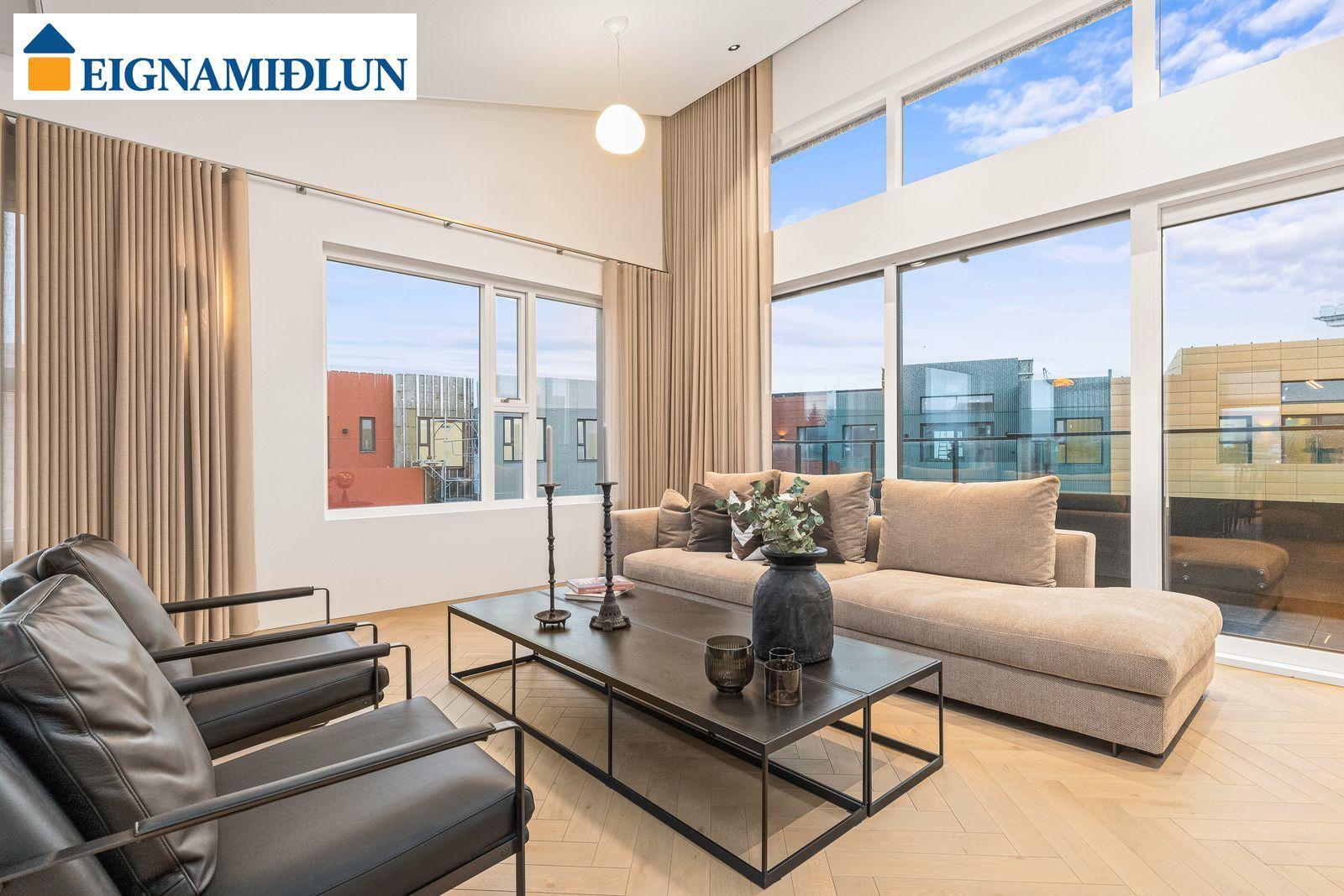 Nánari upplýsingar gefur: Brynjar Þór Sumarliðason, Löggiltur fasteignasali í síma 896-1168 eða brynjar@eignamidlun.isOpinber skráning eignar: Íbúð merkt 04-05 er vönduð þriggja herbergja íbúð. Fastanúmer eignar: 253-4907. Birt flatarmál er 166.3 fm með geymslu og bílskúr í sameign. Íbúðinni fylgir bílskúr og eitt bílastæði í bílageymslu. Tölvumyndir eru af sýningaríbúðum.