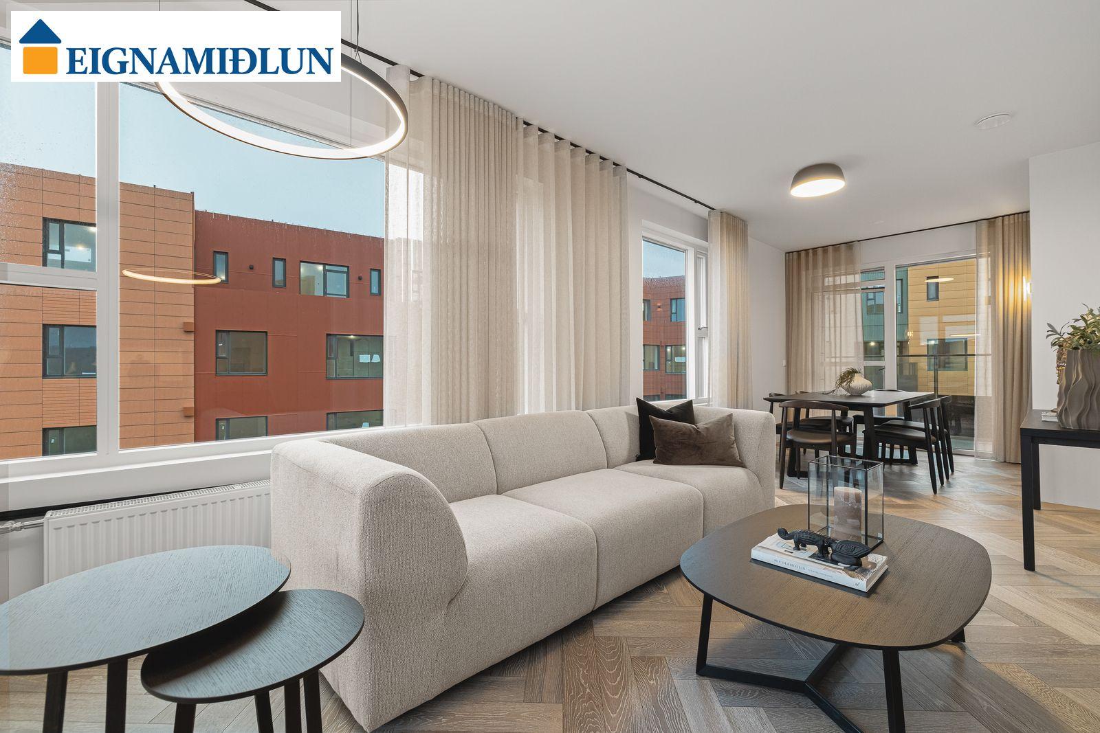 Opinber skráning eignar: Íbúð merkt 03-18 er vönduð þriggja herbergja íbúð. Fastanúmer eignar: 253-4900. Birt flatarmál er 70.8 fm með svölum og sérgeymslu í sameign. Íbúðinni fylgir eitt stæði í bílageymslu. Tölvumyndir eru af sýningaríbúðum.