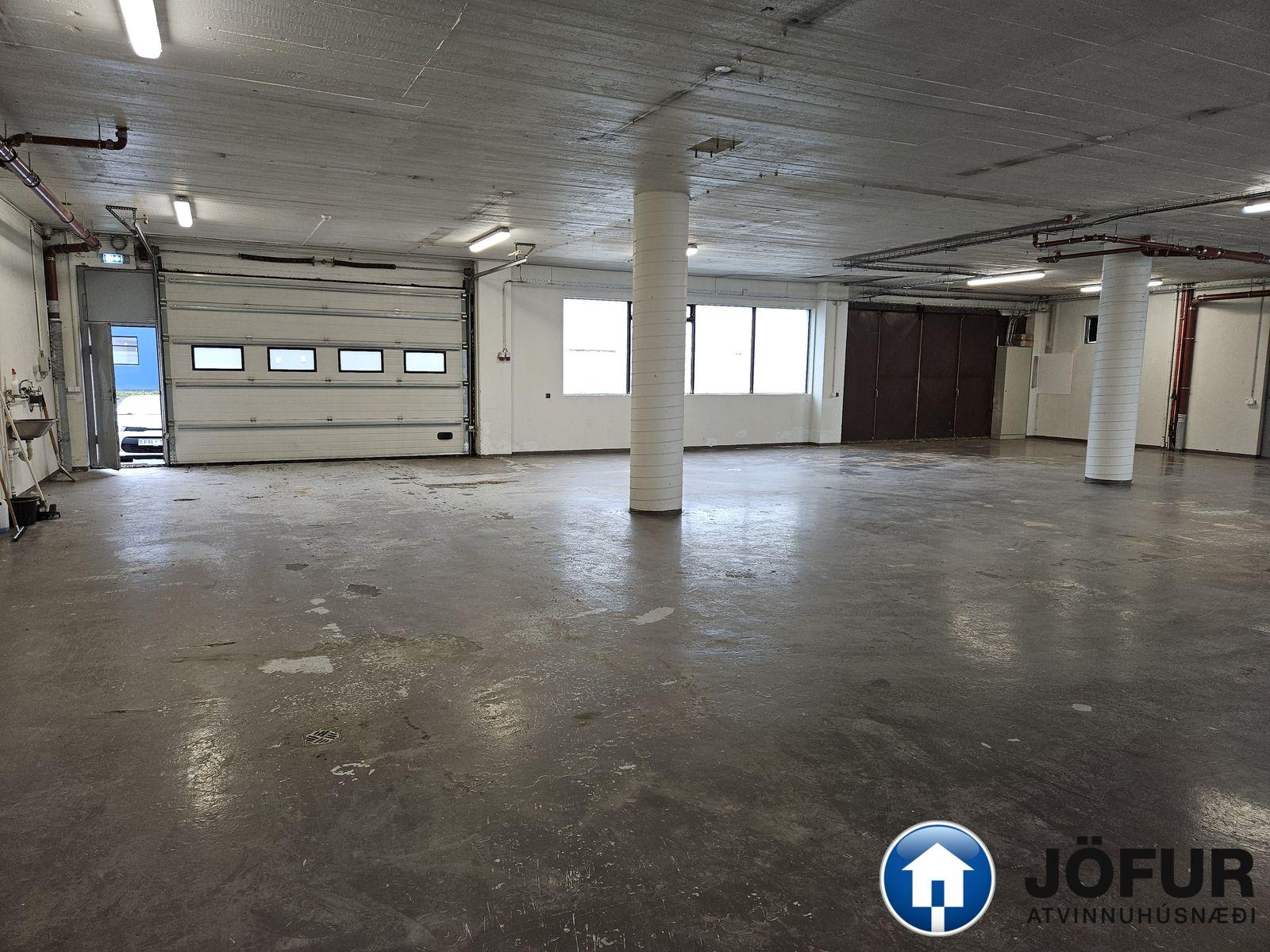 Nánari lýsing: Húsnæðið skiptist upp í opinn vinnusal þar sem lofthæð er um 3,2 m., tvö lokuð herbergi/ skrifstofuherbergi og tvö Wc með sturtuklefum. 3ja fasa rafmagn er til staðar. Hæð á innkeyrsluhurð er 2,7 m. Niðurföll eru í gólfi. VSK leggst ekki við leigufjárhæðina.